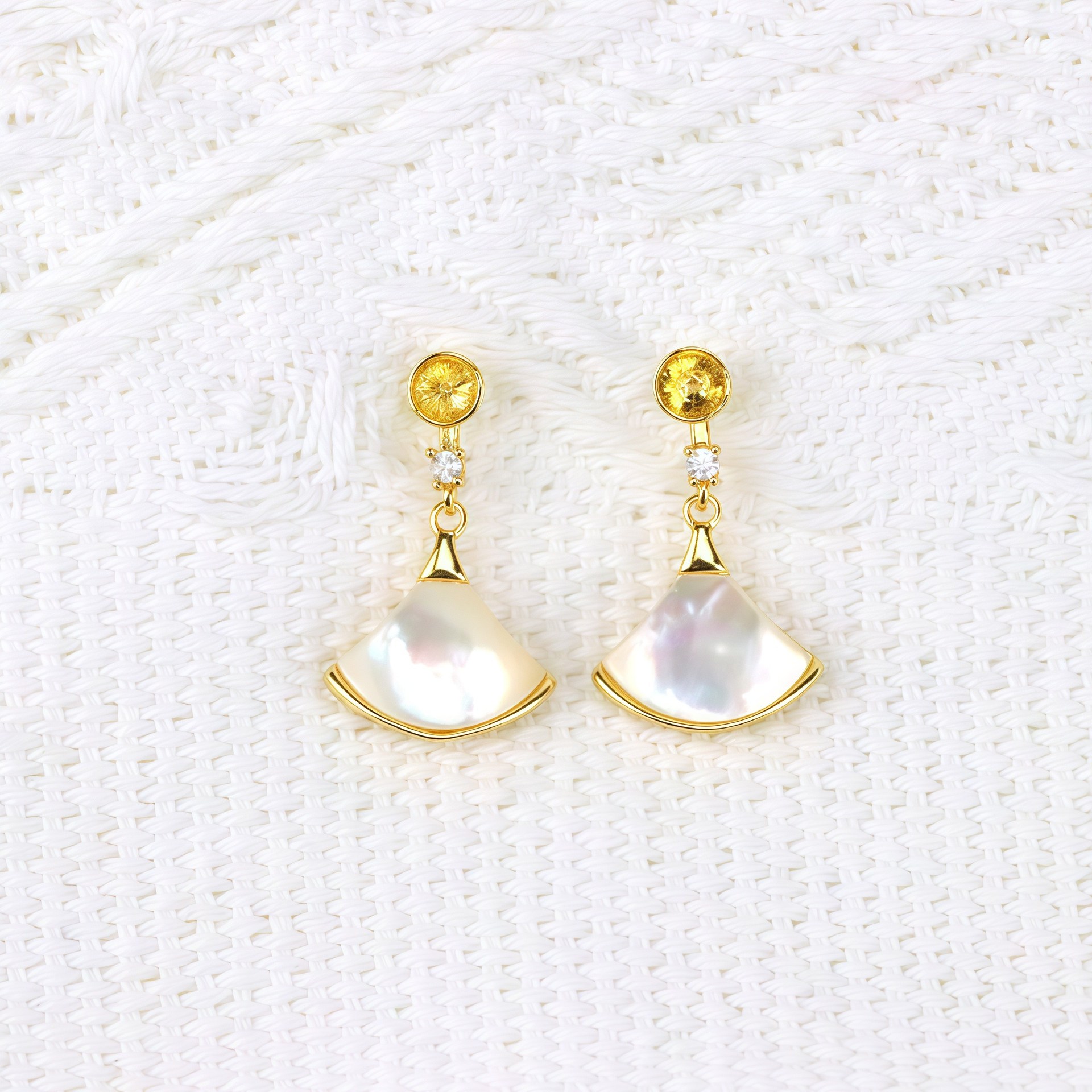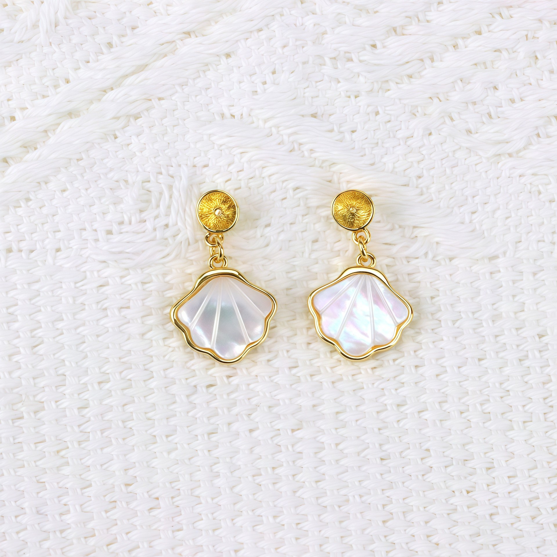Componente orecchino a goccia in ottone, bianco conchiglia, with ottone, placcato color oro, DIY, nessuno, assenza di nichel,piombo&cadmio, Venduto da coppia