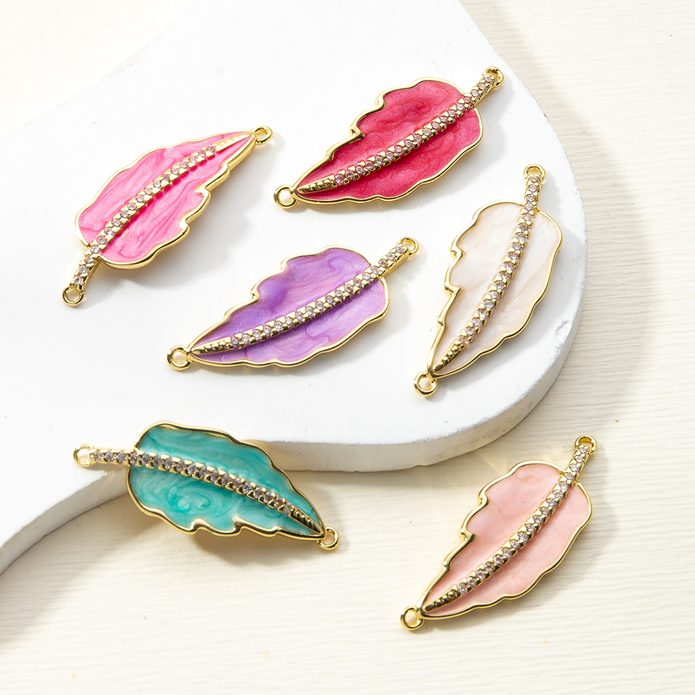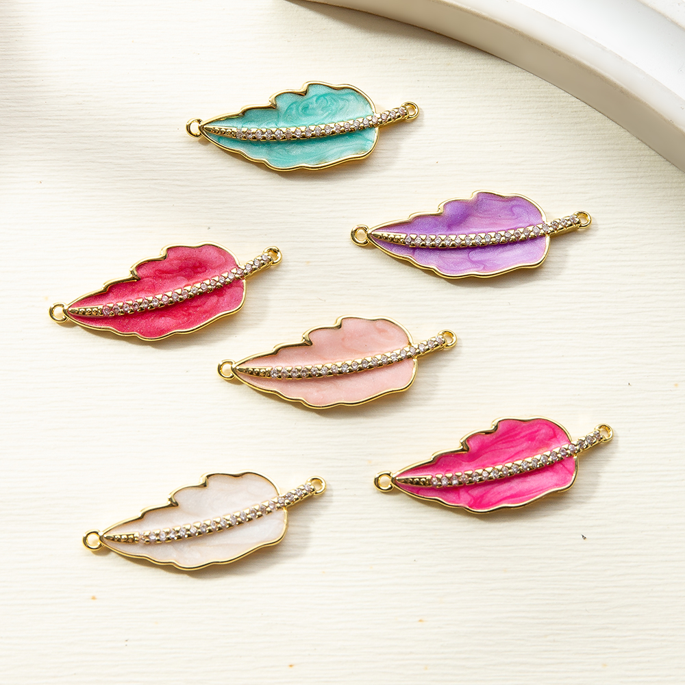 Connettore di gioielli in ottone, Foglia, placcato, DIY & smalto, nessuno, assenza di nichel,piombo&cadmio, 32.75x2.10x12.30mm, Venduto da PC