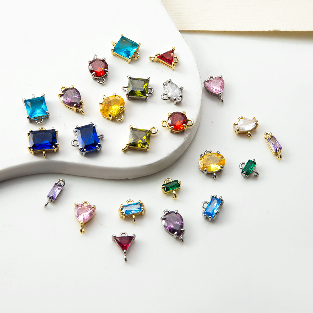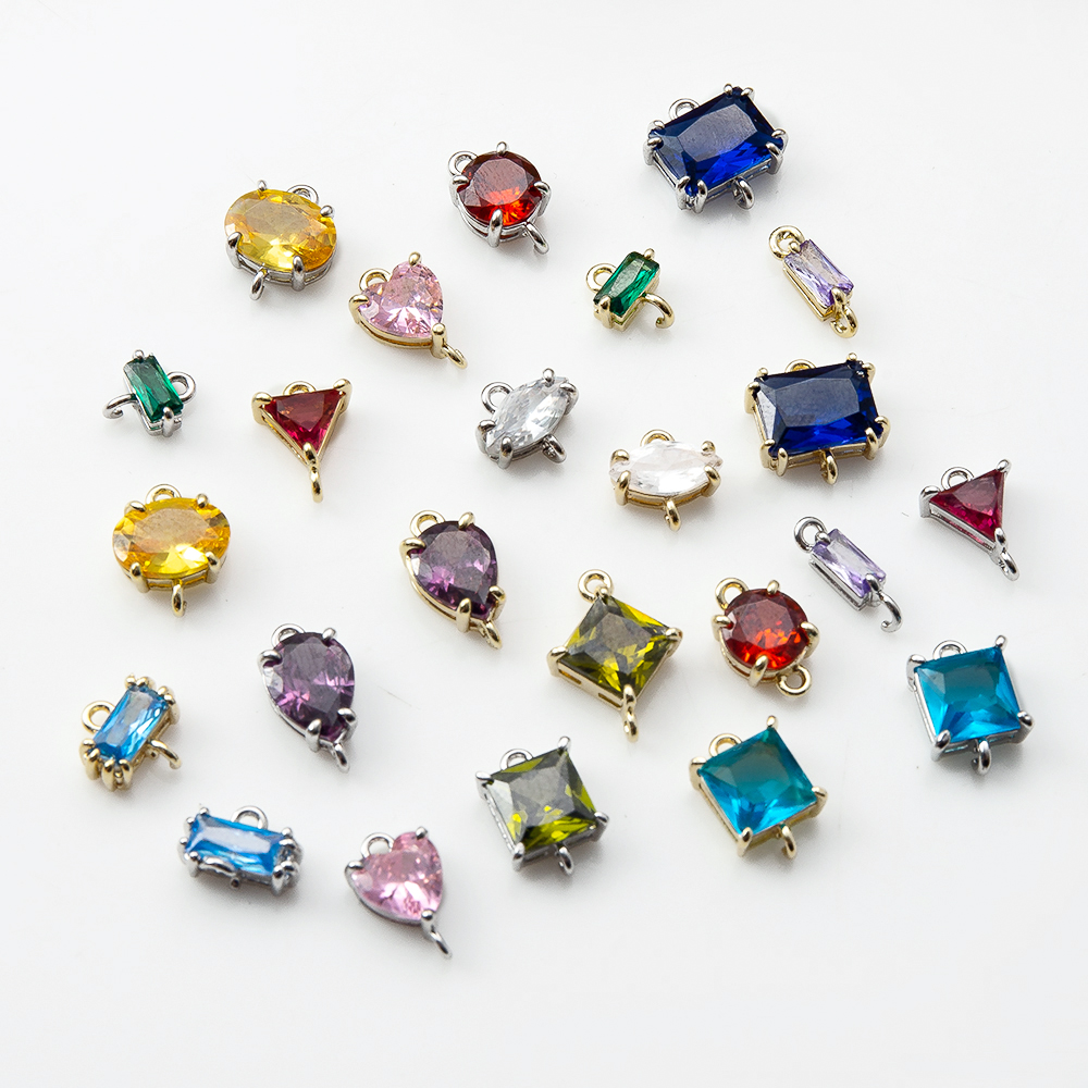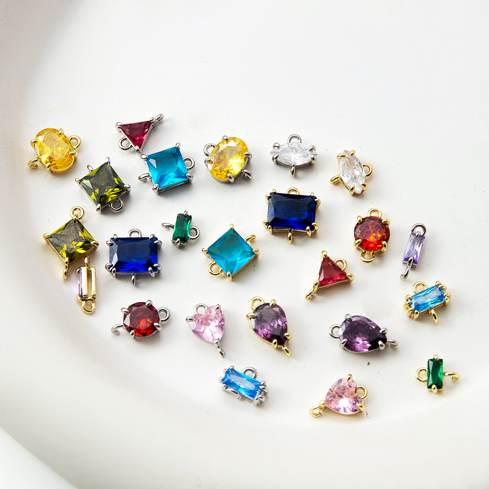 Connettore di gioielli in ottone, placcato, DIY & Micro spianare cubic zirconia, nessuno, assenza di nichel,piombo&cadmio, 9.50x3.70x13.20mm, Venduto da PC