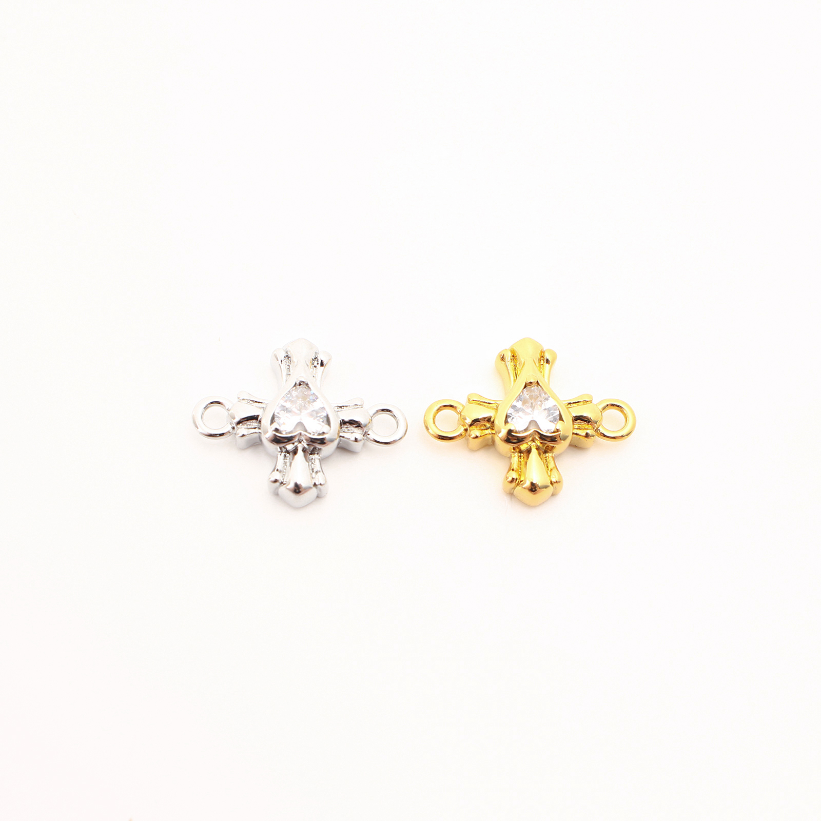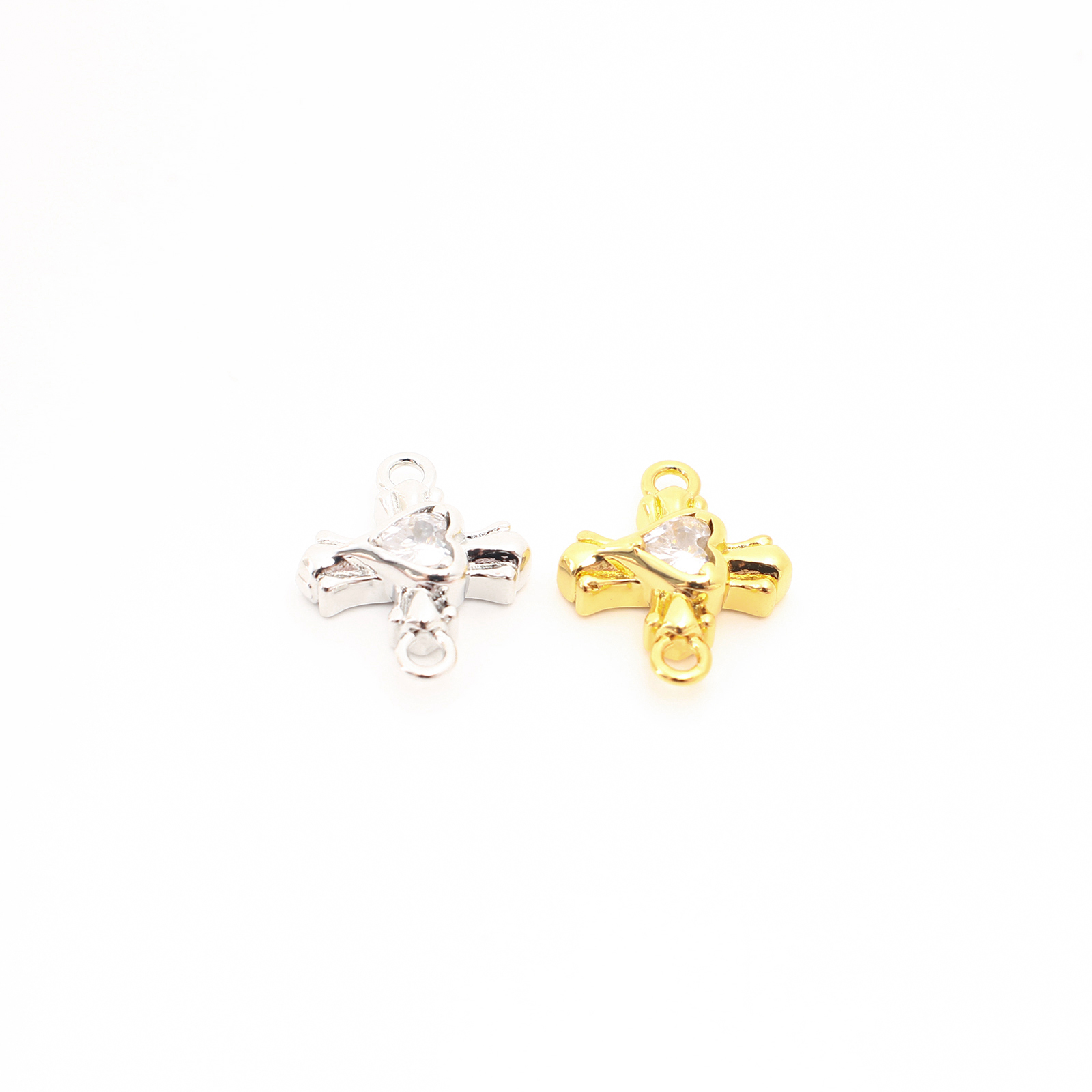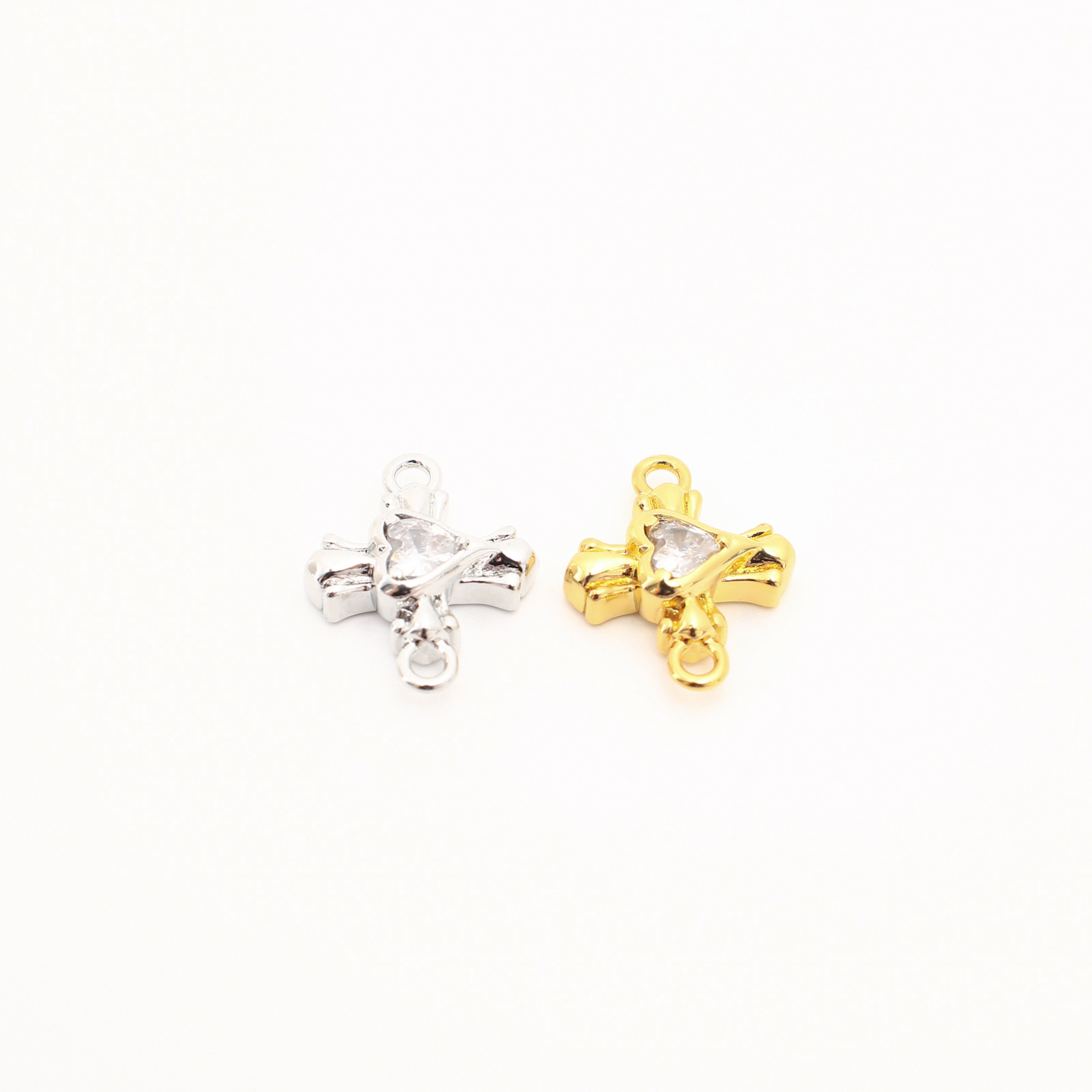 Connettore di gioielli in ottone, Croce, DIY & Micro spianare cubic zirconia, nessuno, 15x12x4mm, Venduto da PC