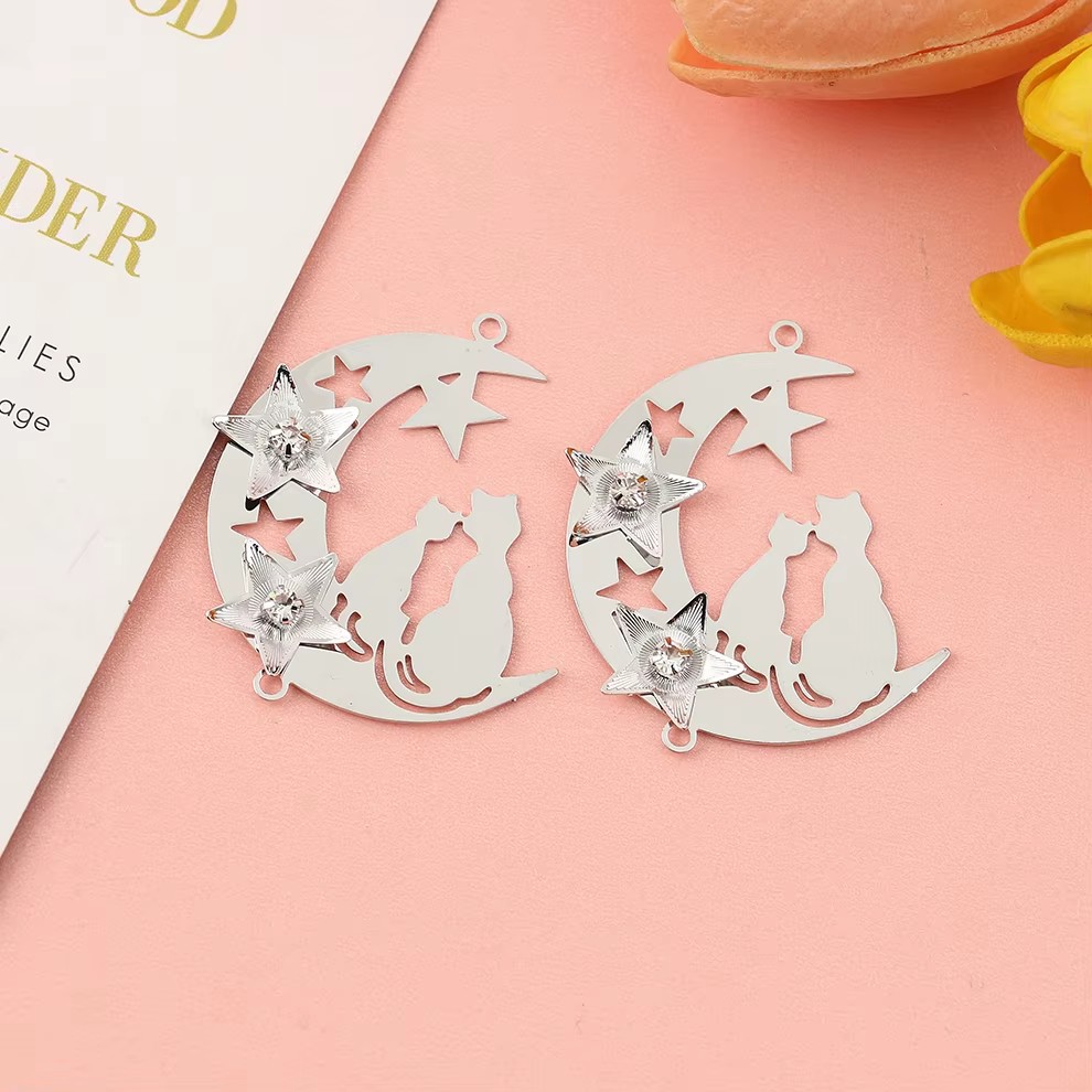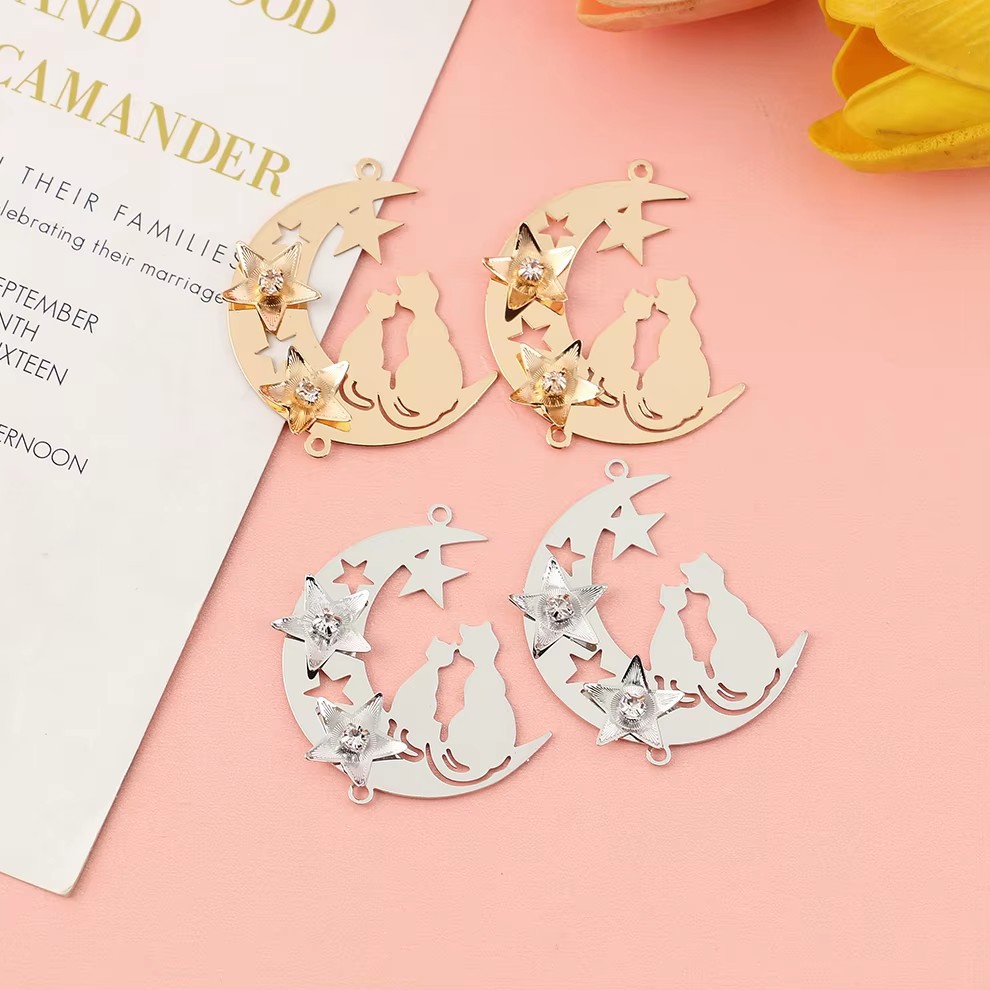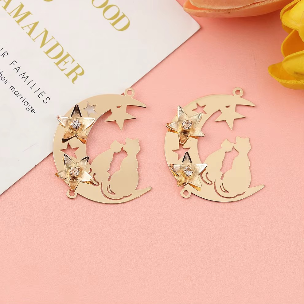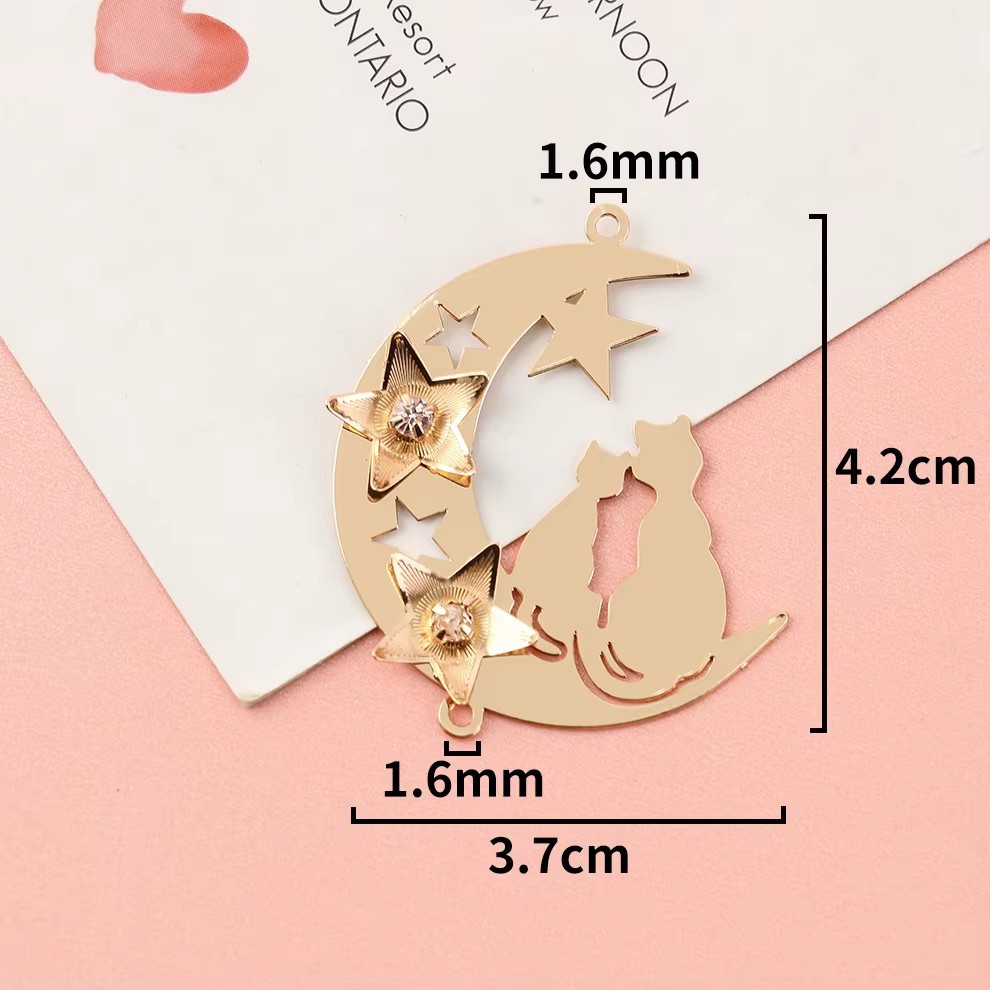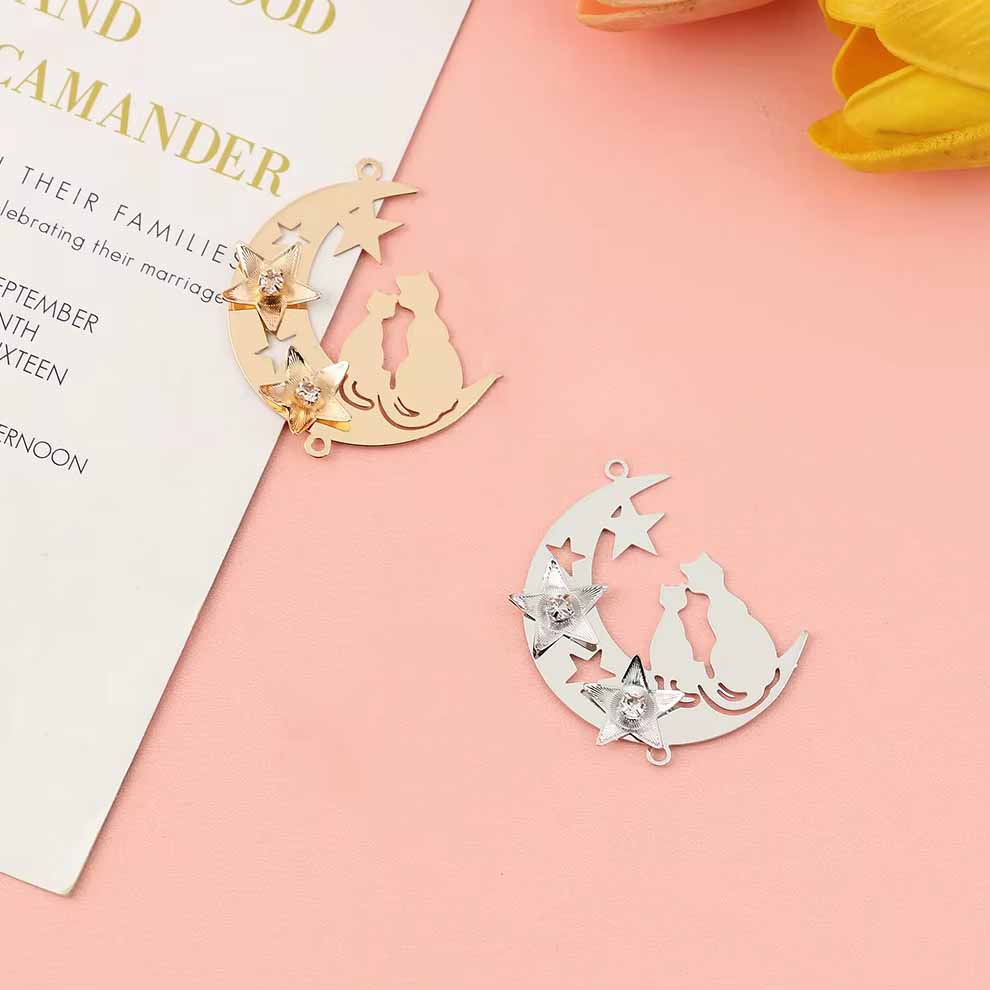 Connettore di gioielli in ottone, Luna, placcato, DIY & 1/1 anello del connettore, nessuno, assenza di nichel,piombo&cadmio, 37x42mm, Foro:Appross. 1.6mm, Appross. 100PC/borsa, Venduto da borsa