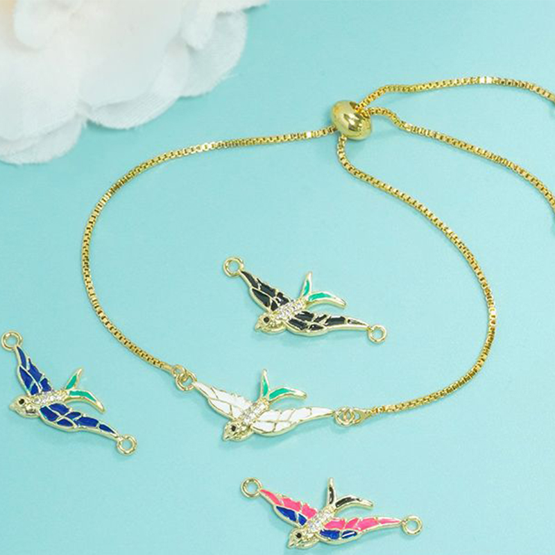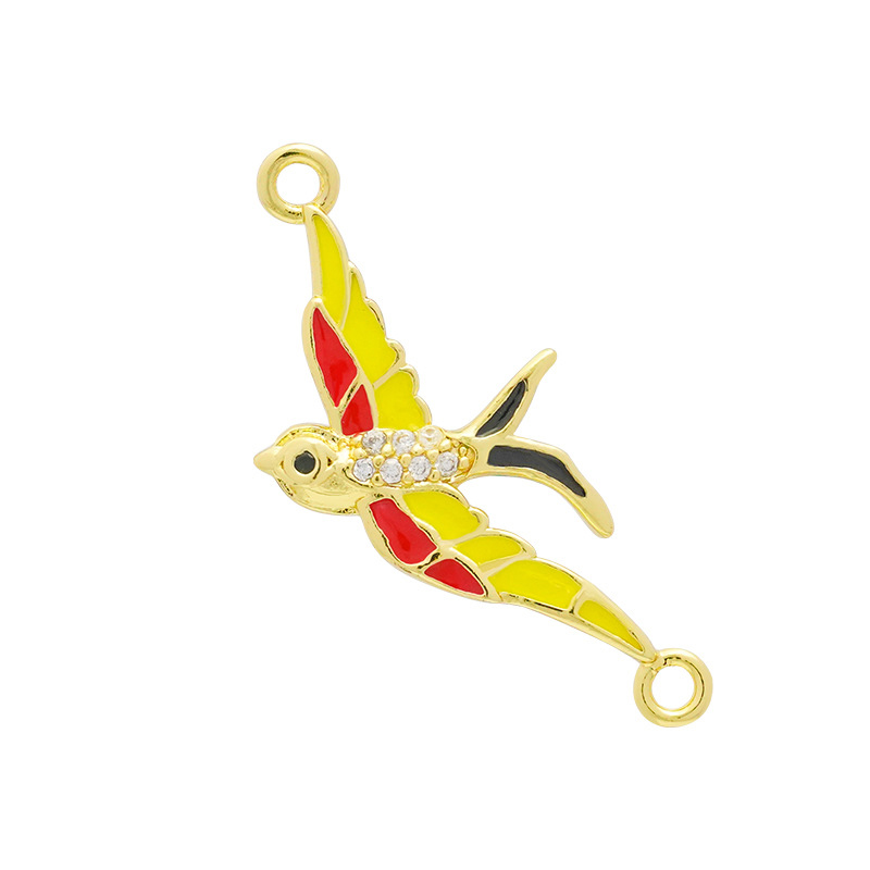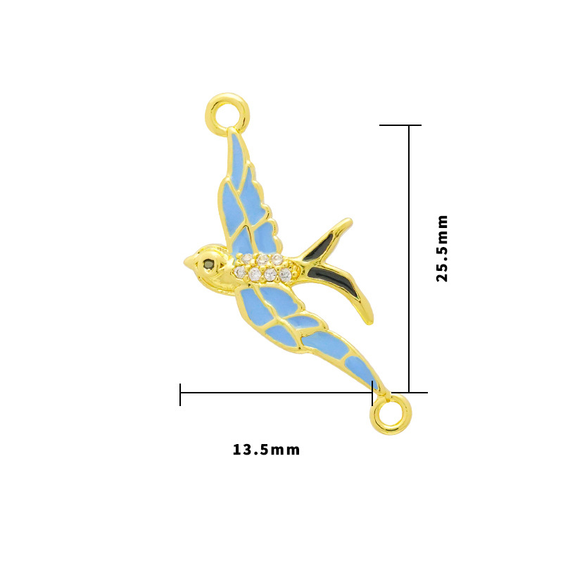 Connettore di gioielli in ottone, rondine, placcato color oro, DIY & Micro spianare cubic zirconia & smalto, nessuno, 25.50x13.50mm, Venduto da PC