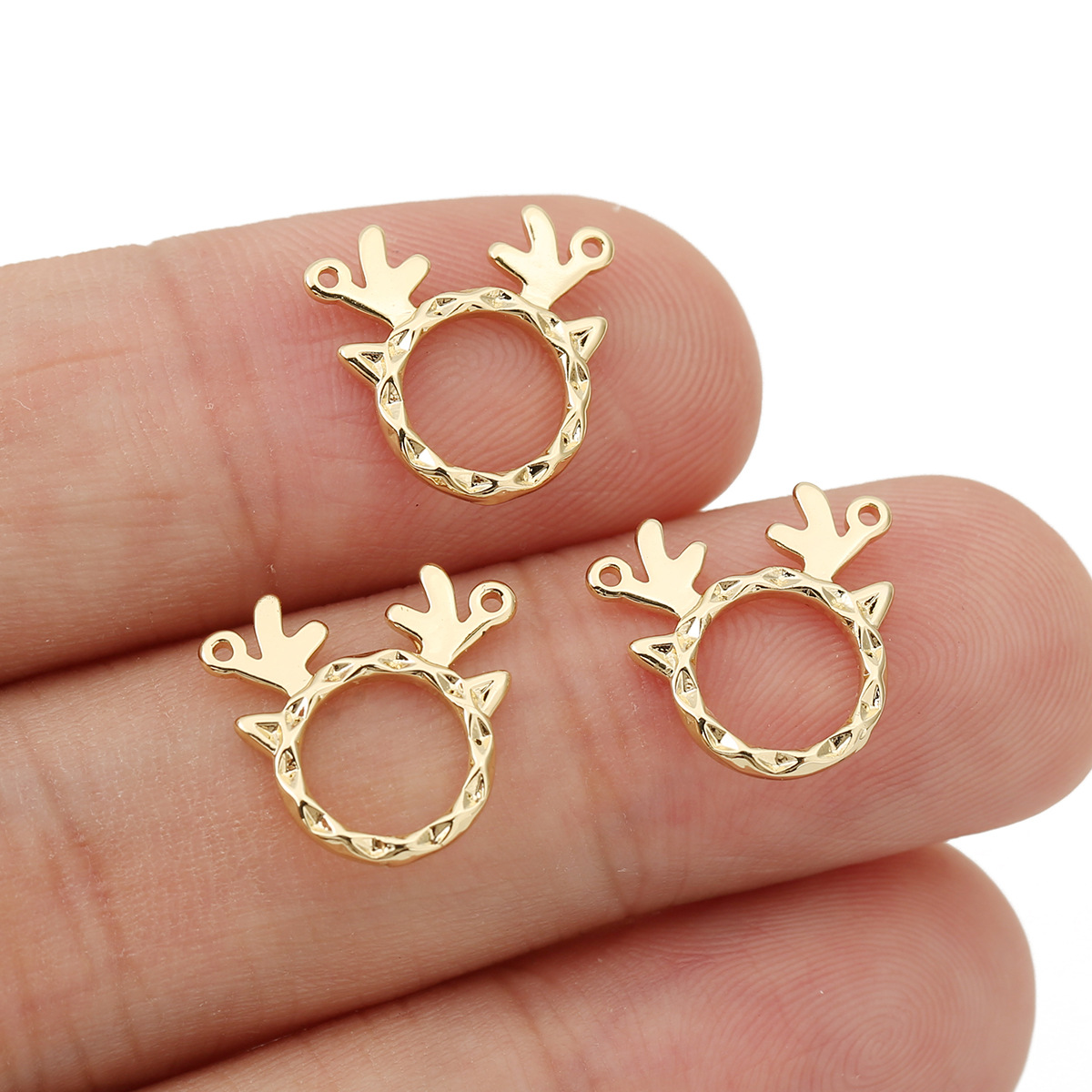Connettore di gioielli in ottone, Palchi di corna, placcato color oro, Design natalizio & DIY, dorato, assenza di nichel,piombo&cadmio, 10PC/borsa, Venduto da borsa