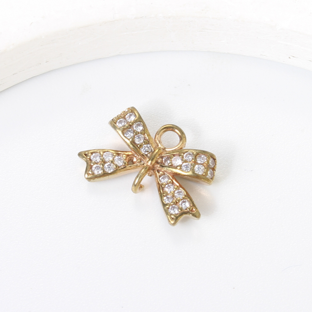 Connettore di gioielli in ottone, Nodo di Cravatta, placcato, DIY & con strass, dorato, assenza di nichel,piombo&cadmio, 9x14x3.70mm, Venduto da PC