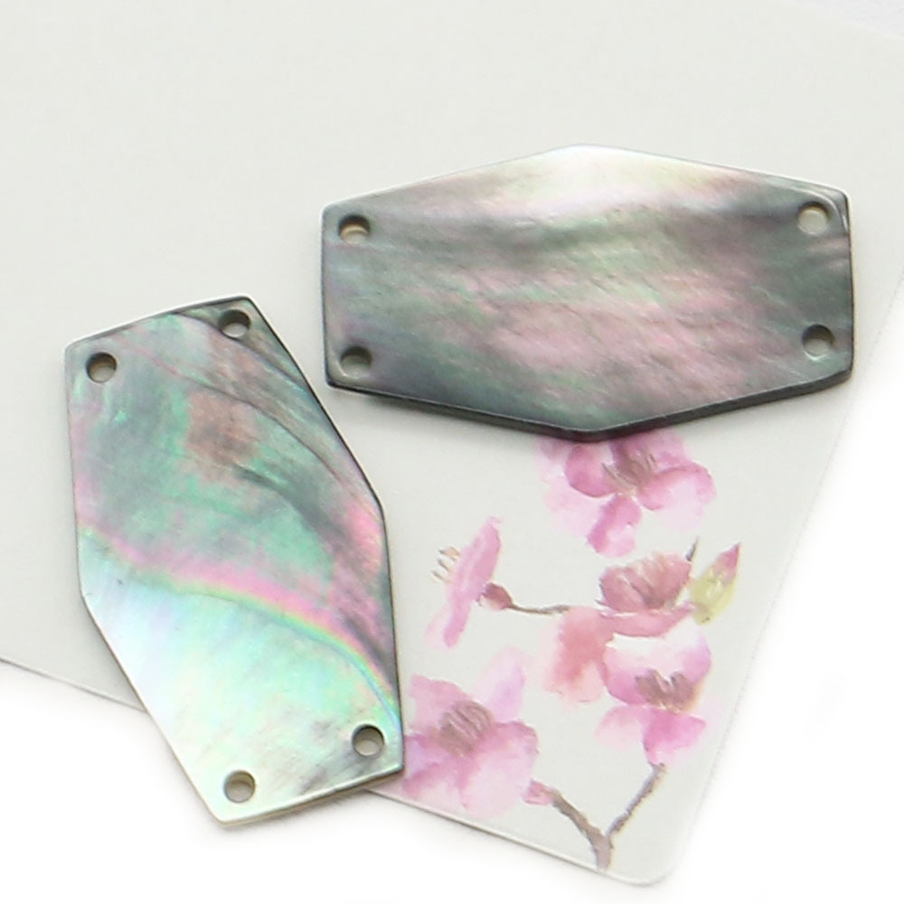 Connettore di shell, Nero-Lip-Shell, Esagono, naturale & DIY & anello del connettore 2/2, 19x33mm, Venduto da PC