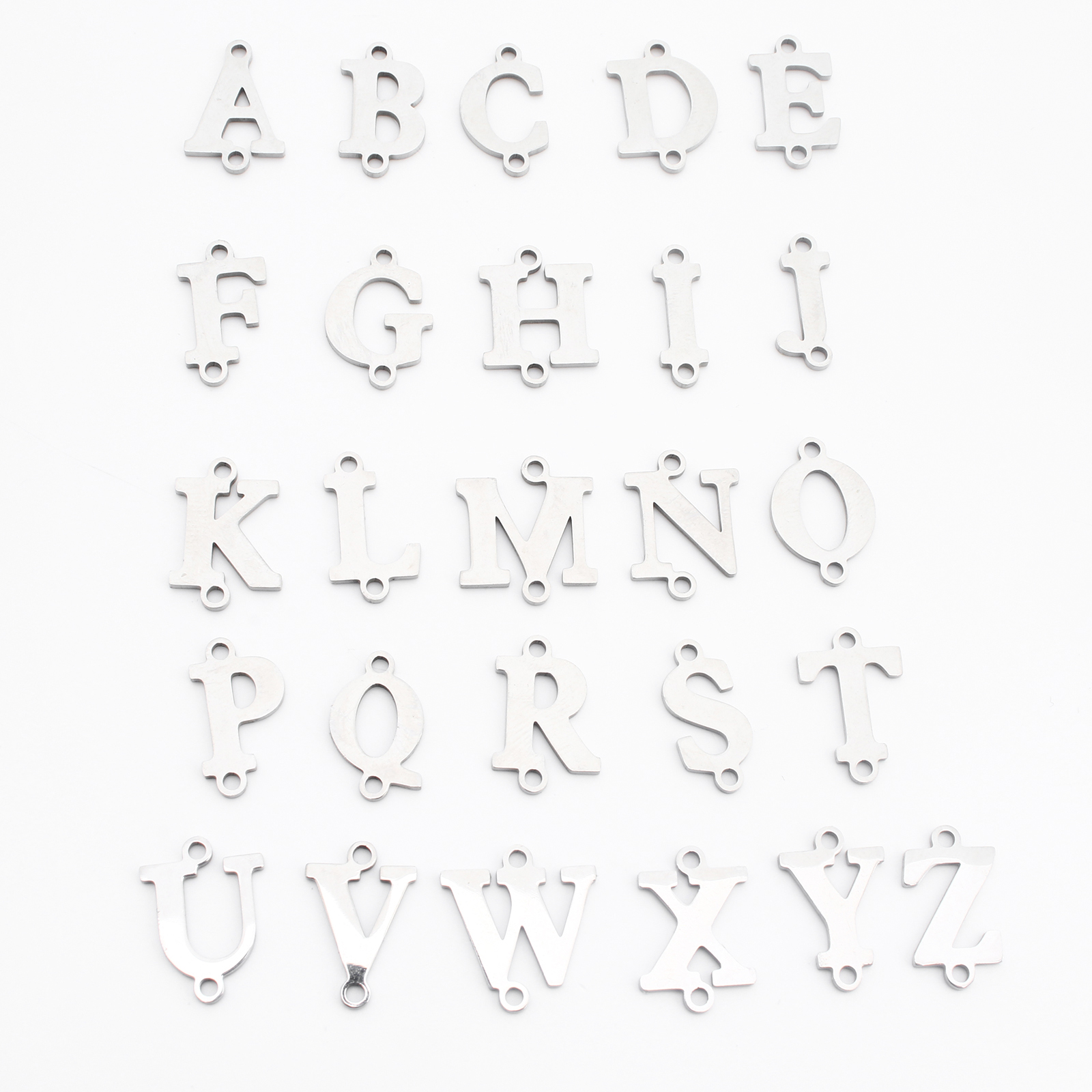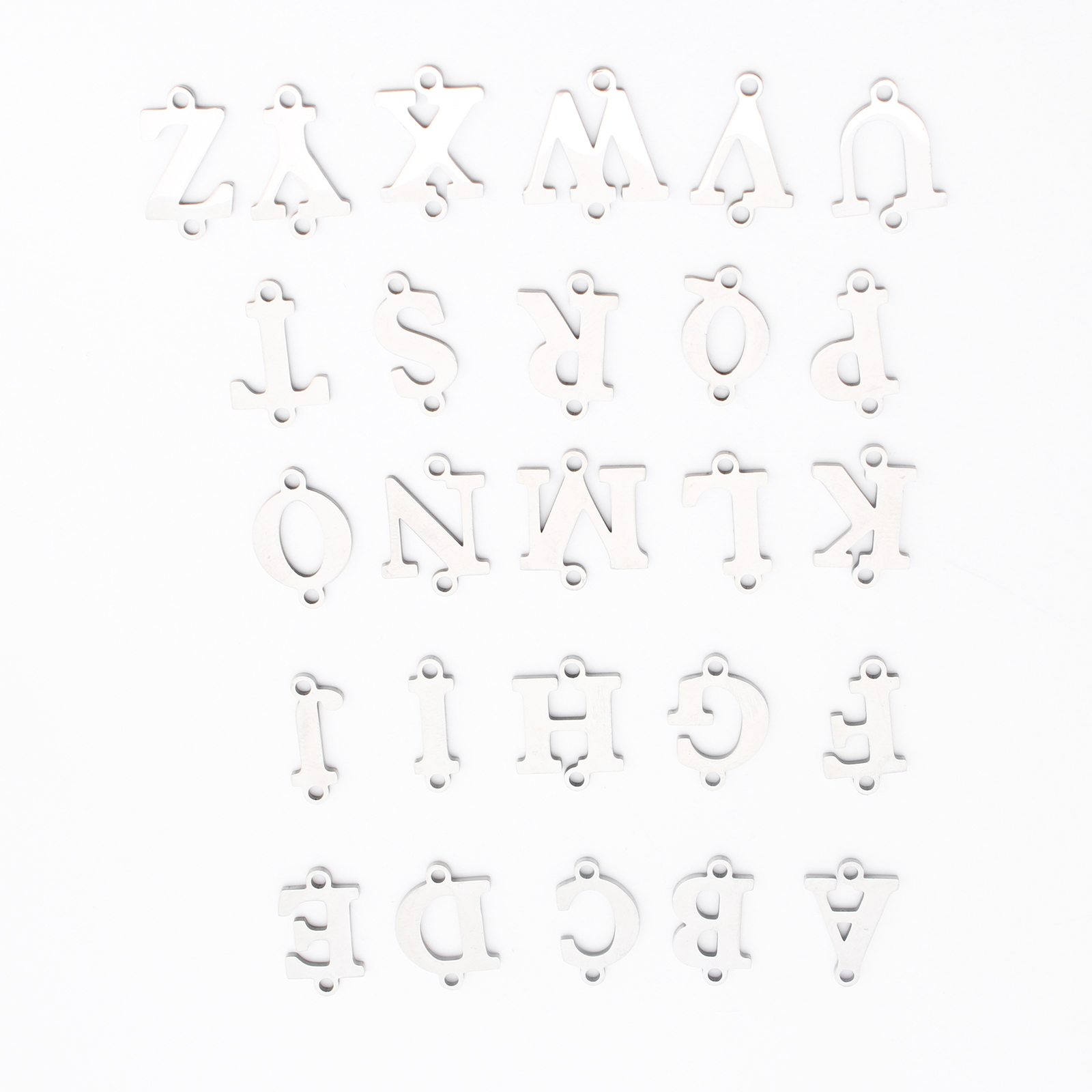 Connettore in acciaio inox, 304 acciaio inox, Lettera alfabeto, placcato color argento, DIY, argento, 14x1mm, Venduto da PC