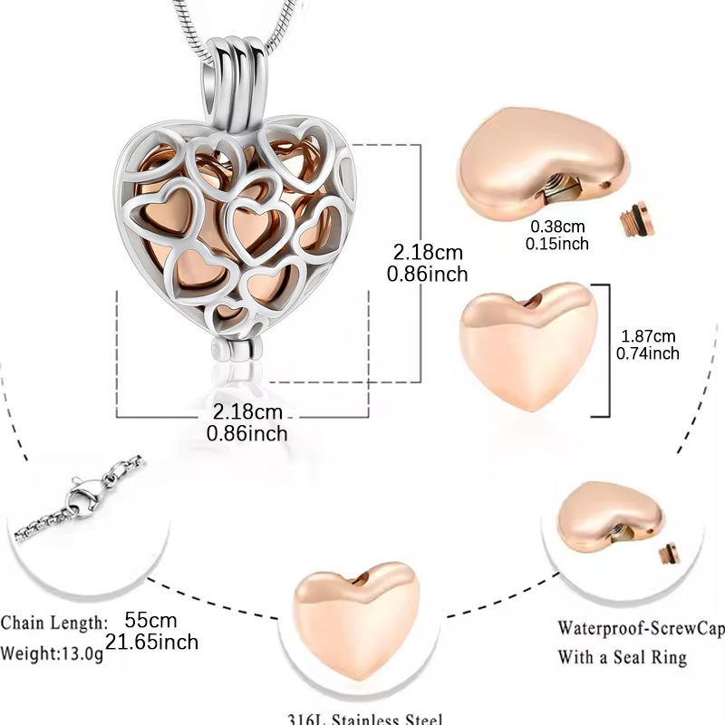 Cremazione Gioielli Ceneri Urna Collana, 304 acciaio inox, Cuore, placcato, gioielli di moda & cavo, nessuno, Venduto da PC