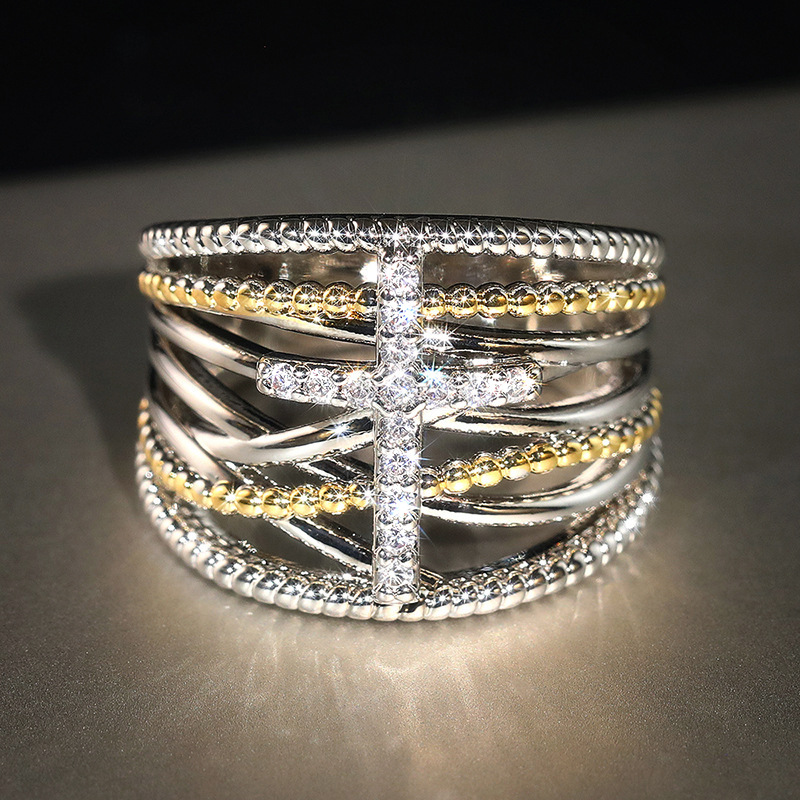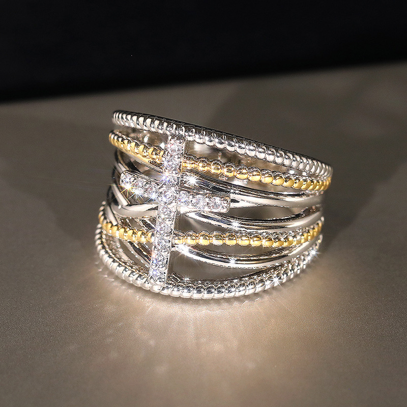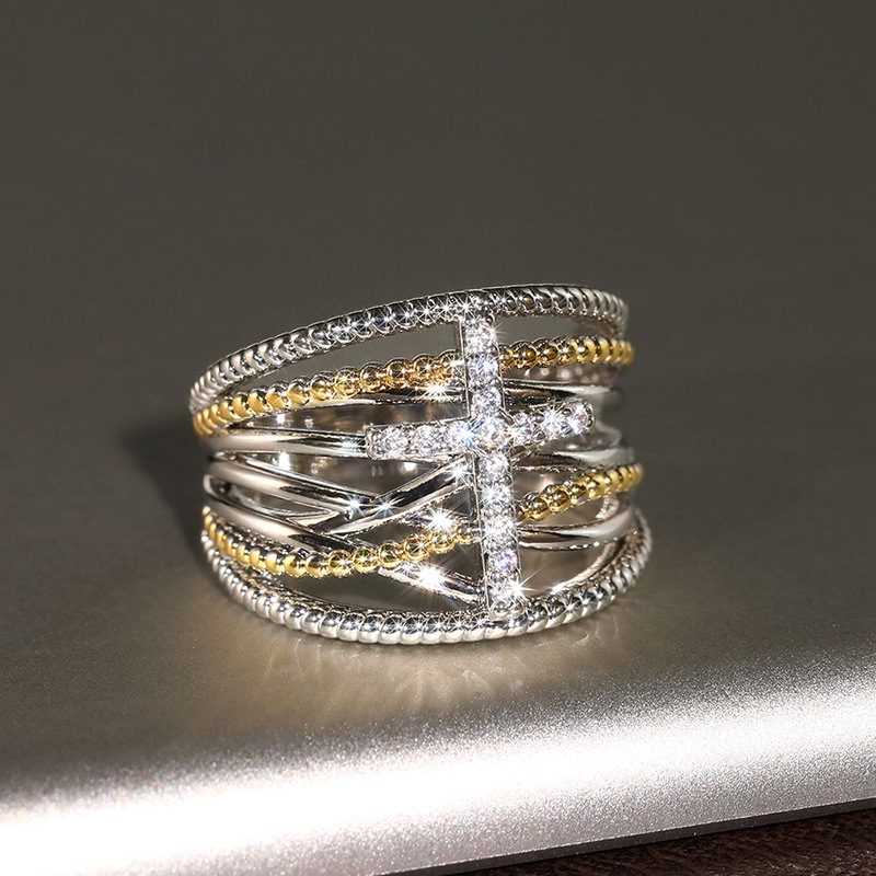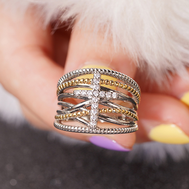 Cubi Circonia Micro Pave anello in ottone, placcato, multistrato & formato differente per scelta & Micro spianare cubic zirconia & per la donna & bicolore, Venduto da PC
