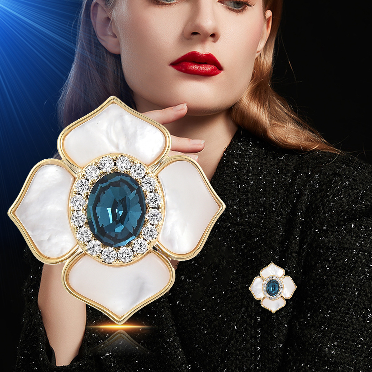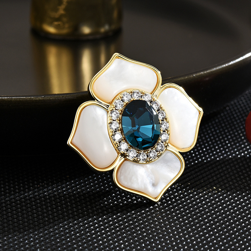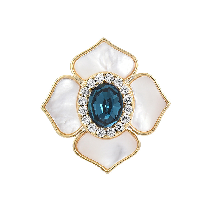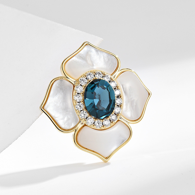 Cubic Zirconia Spilla, ottone, with Cristallo austriaco & conchiglia, placcato, Micro spianare cubic zirconia & per la donna, dorato, 29x29mm, Venduto da PC