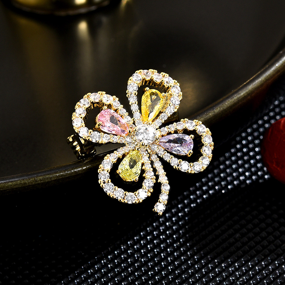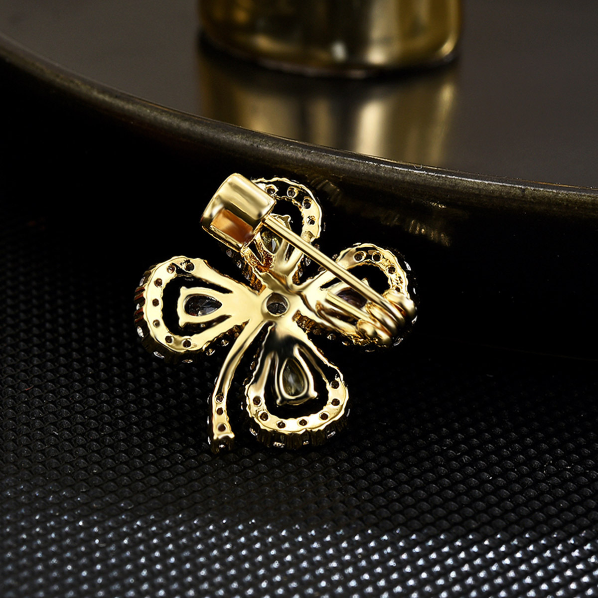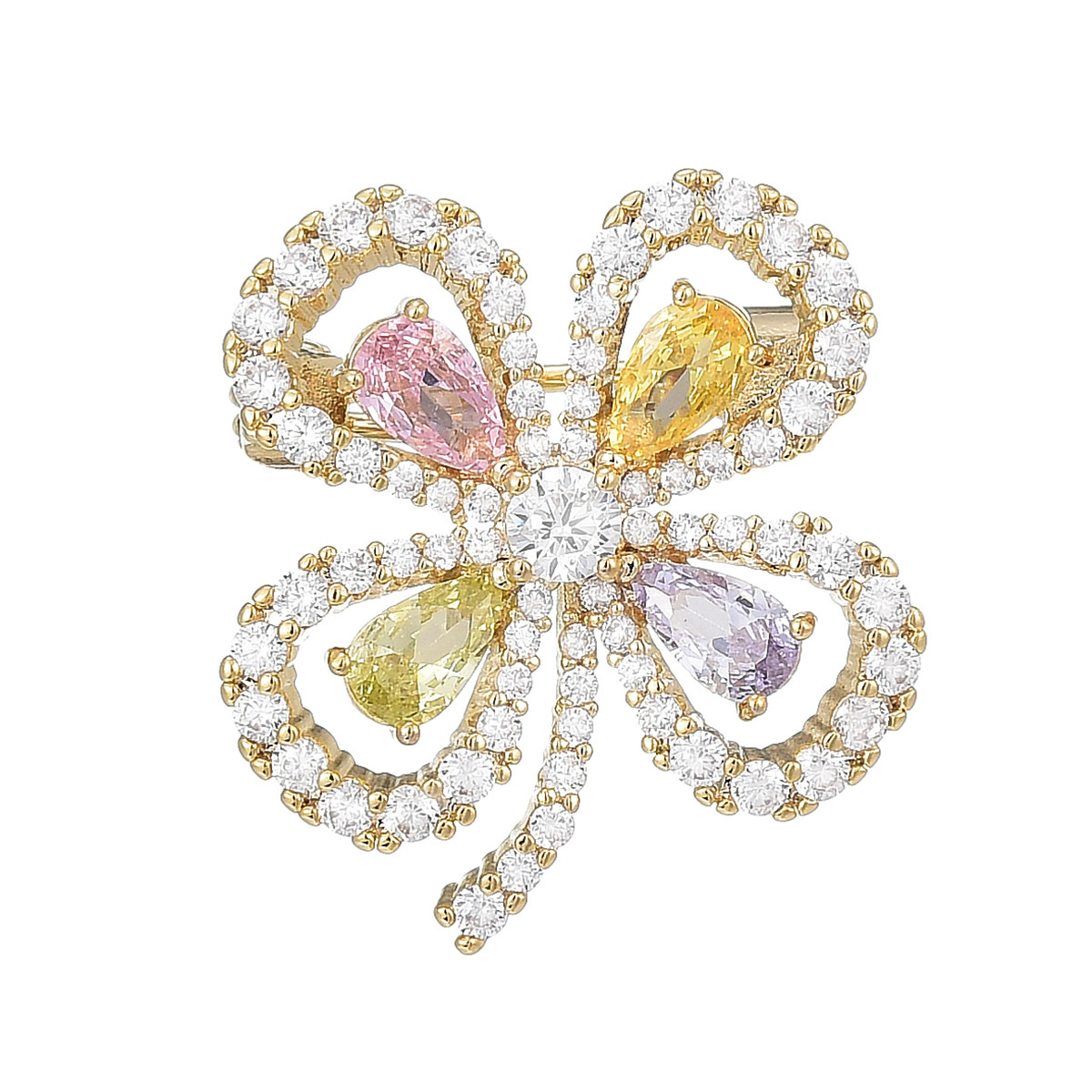 Cubic Zirconia Spilla, ottone, placcato, Micro spianare cubic zirconia & per la donna, dorato, 16x18mm, Venduto da PC