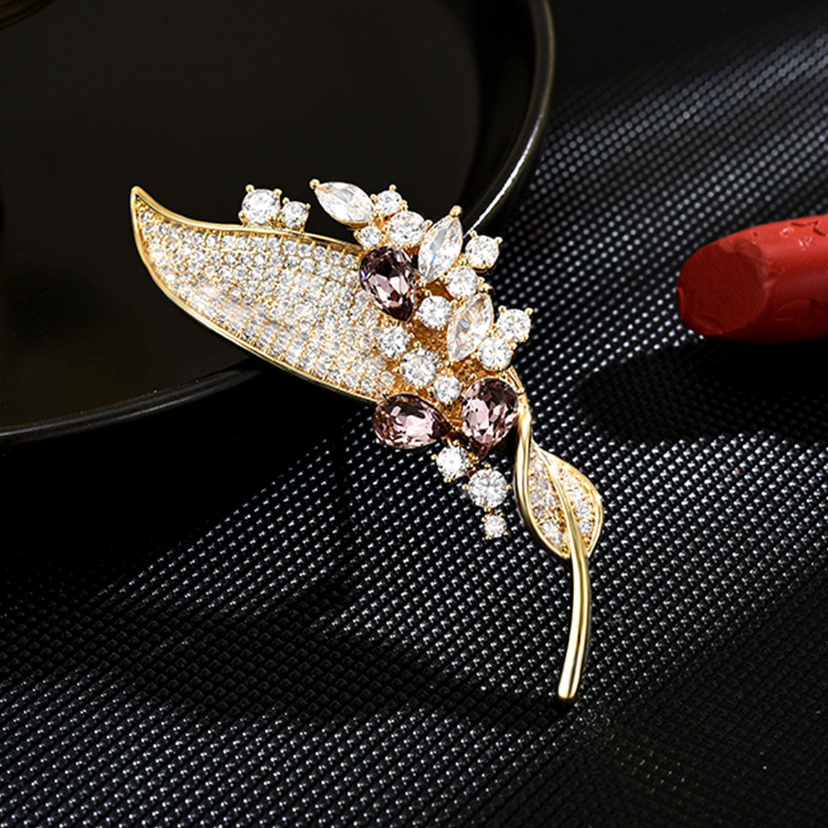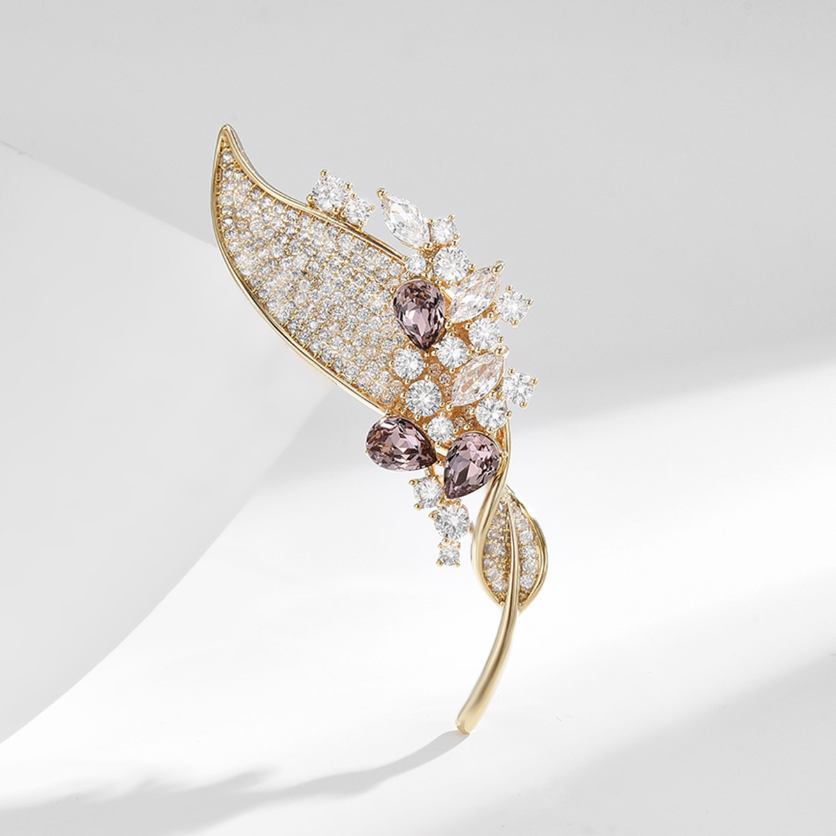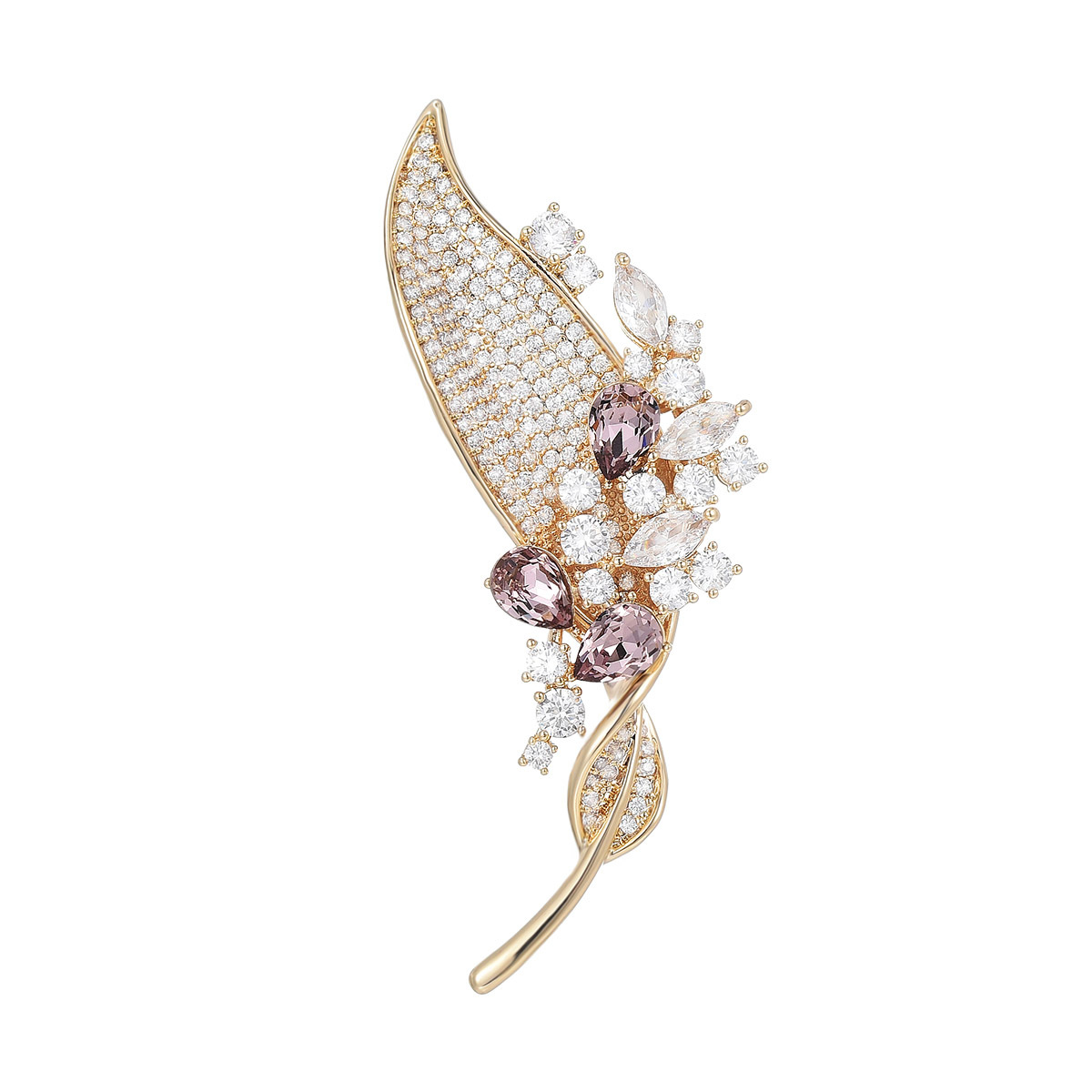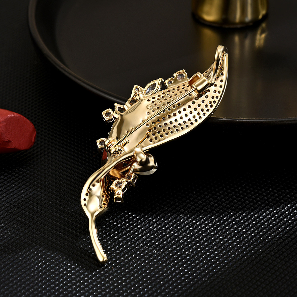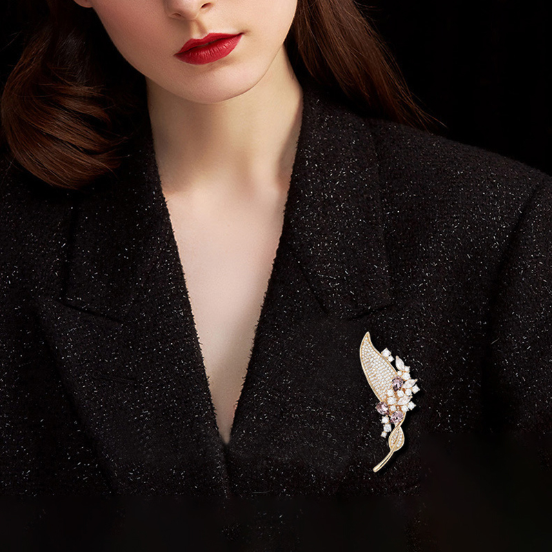 Cubic Zirconia Spilla, ottone, placcato, Micro spianare cubic zirconia & per la donna, dorato, 62x20mm, Venduto da PC