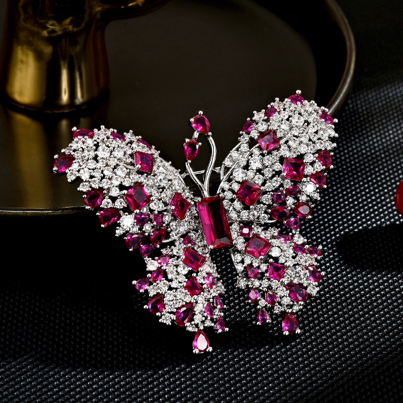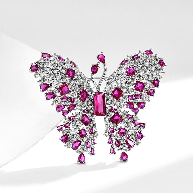 Cubic Zirconia Spilla, ottone, placcato, Micro spianare cubic zirconia & per la donna, argento, 46x56mm, Venduto da PC