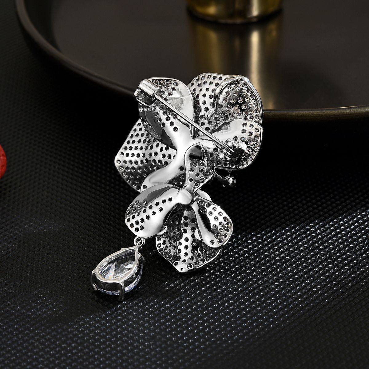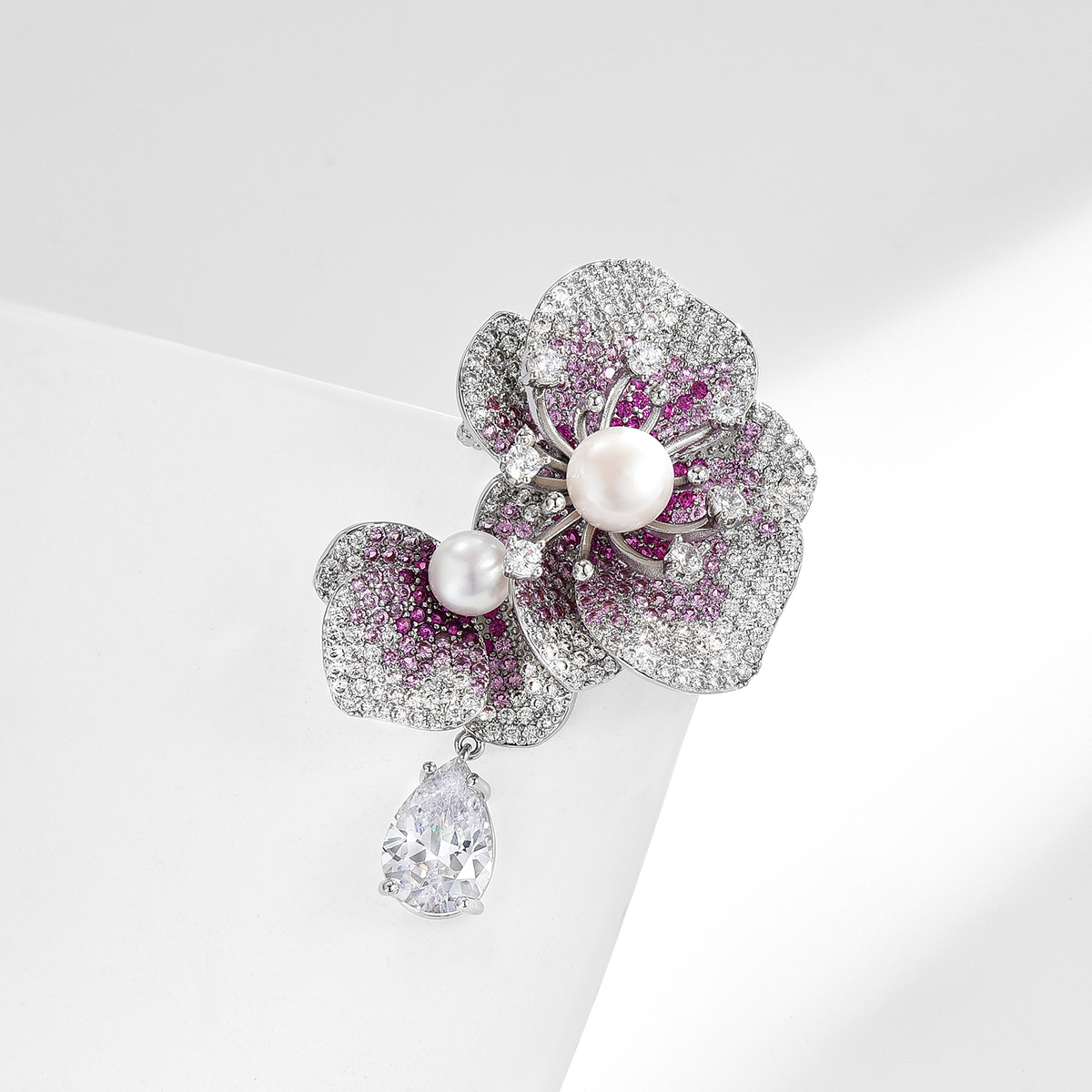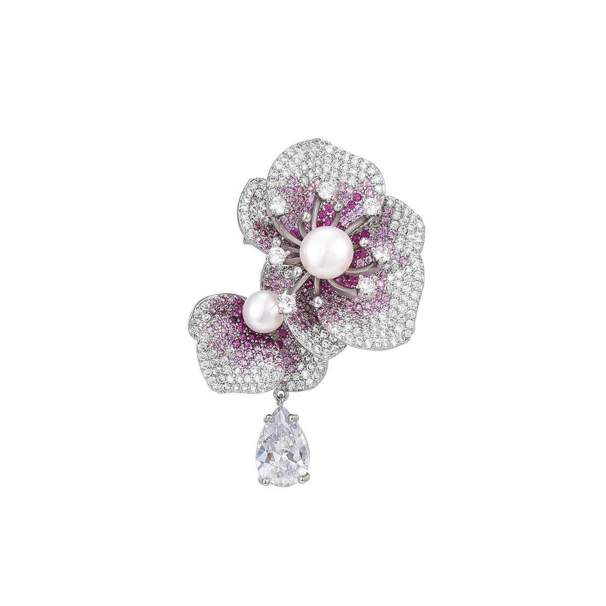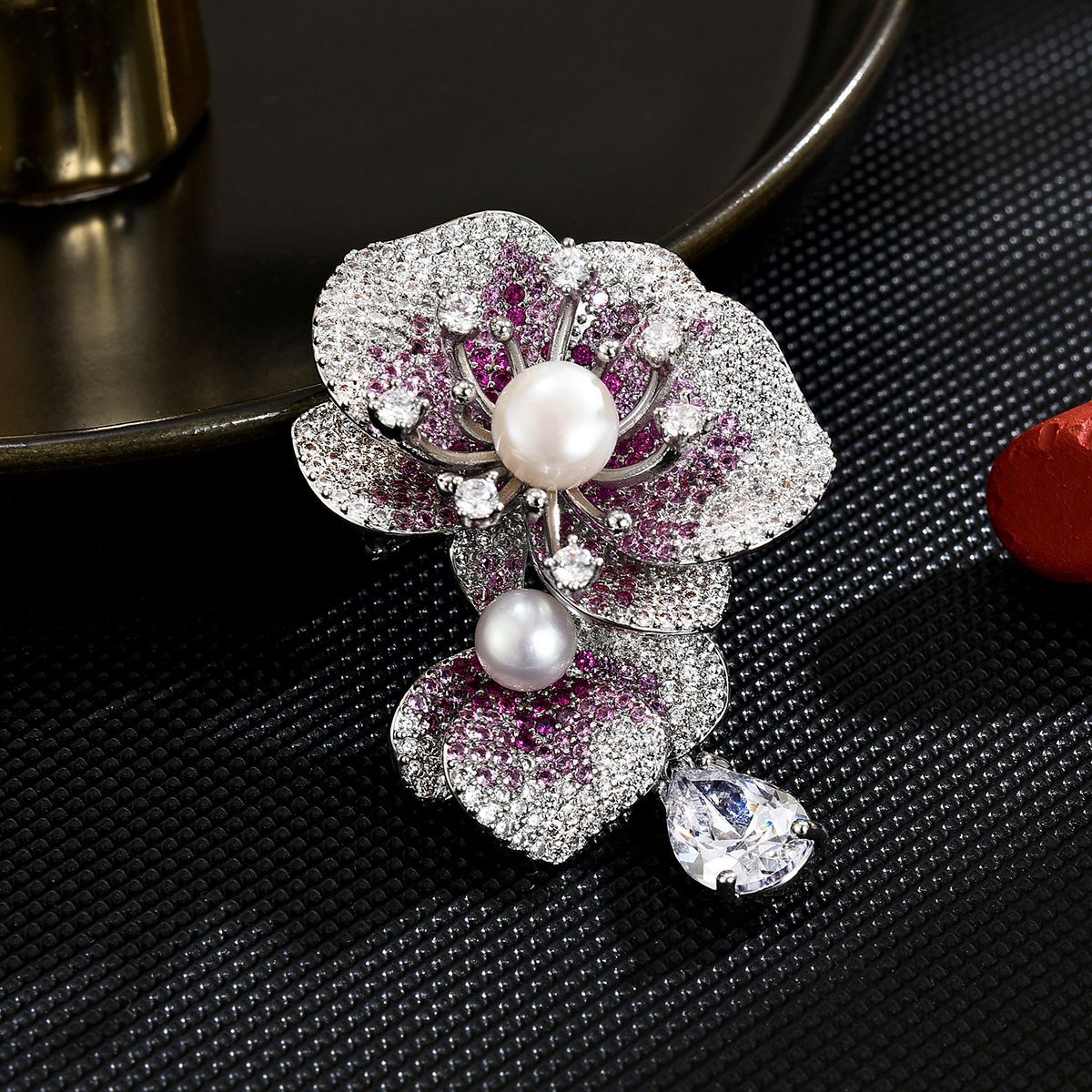 Cubic Zirconia Spilla, ottone, with perla d'acquadolce coltivata naturalmente, placcato, Micro spianare cubic zirconia & per la donna, argento, 50x32mm, Venduto da PC