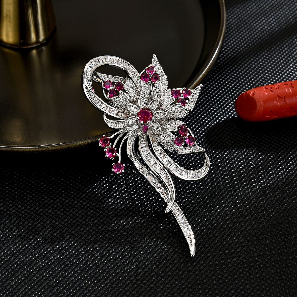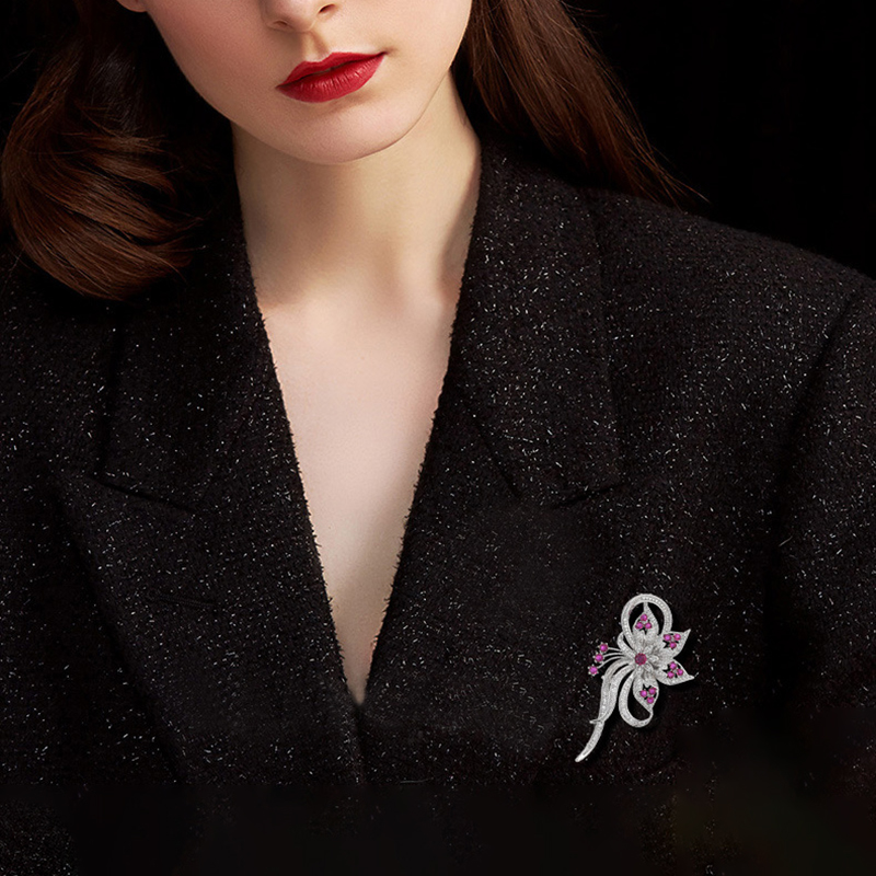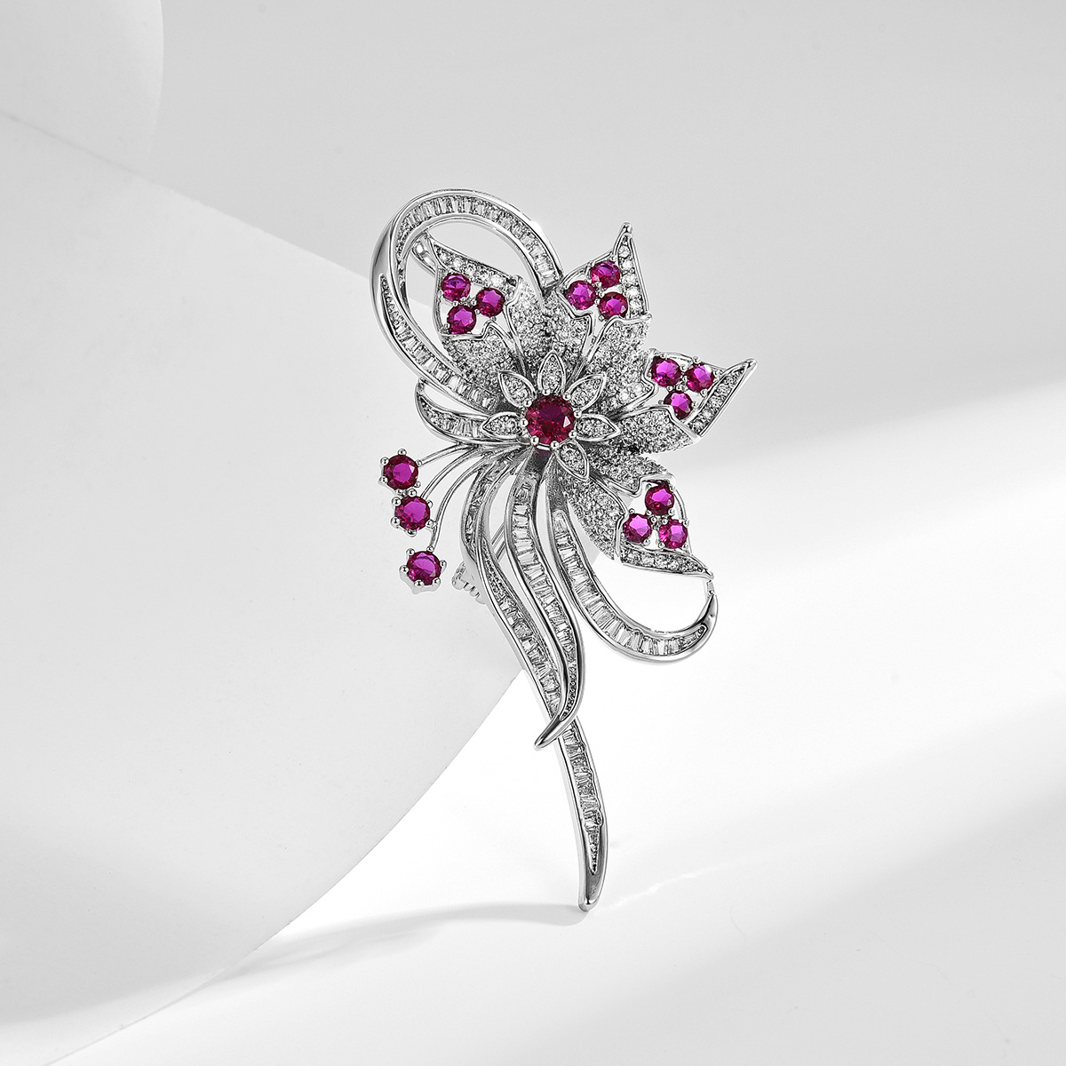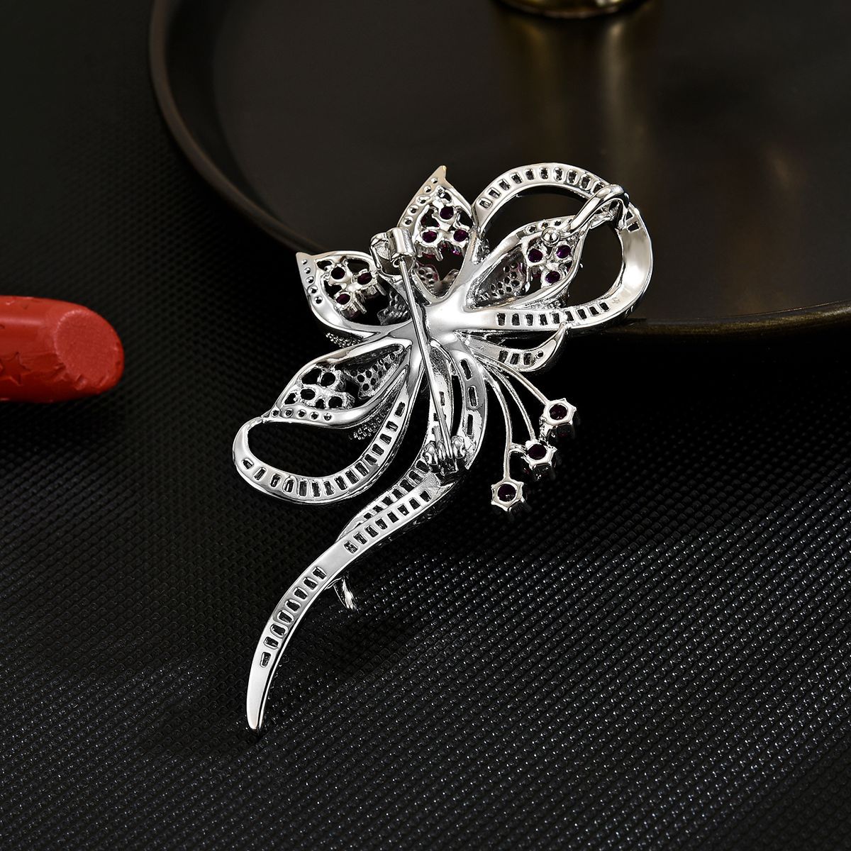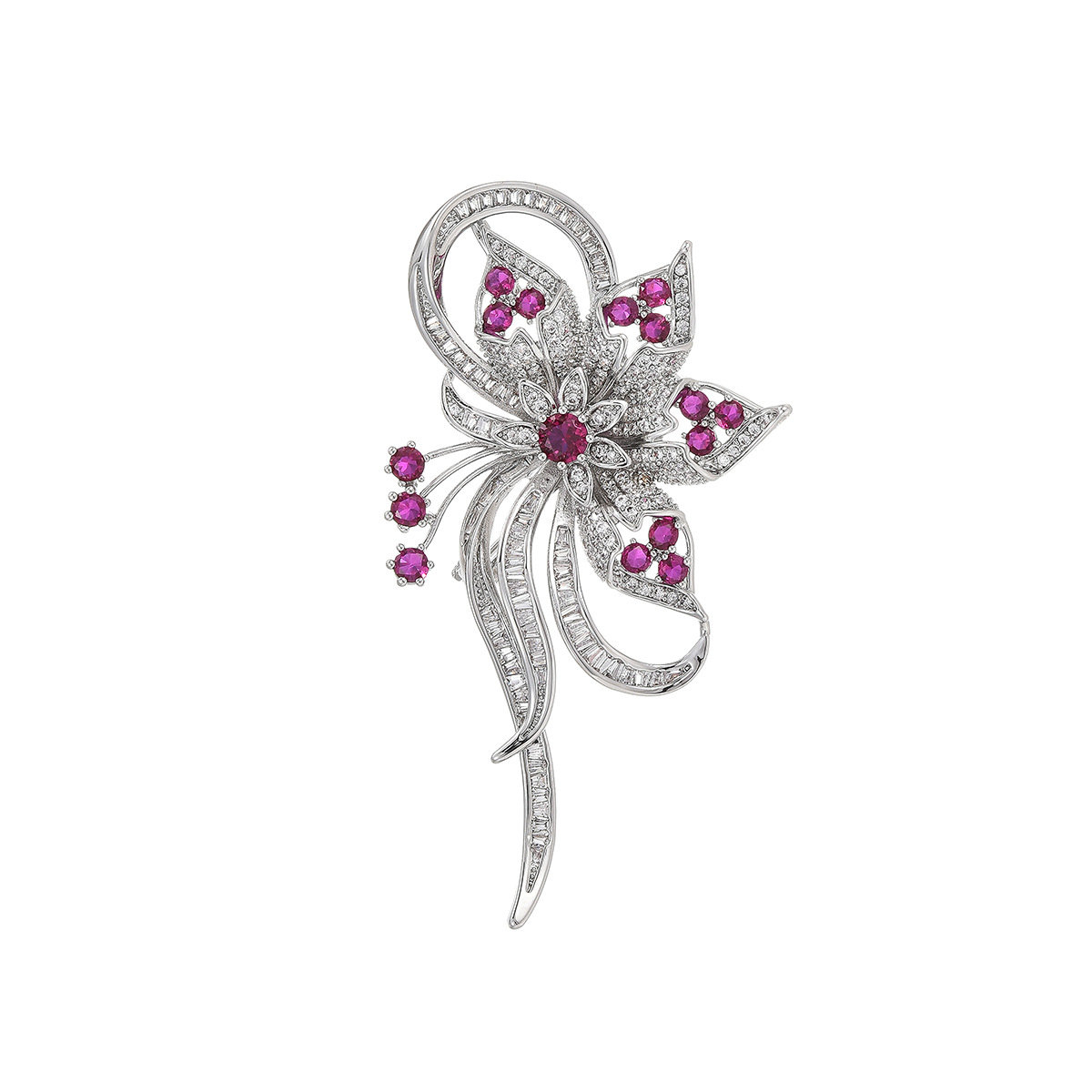 Cubic Zirconia Spilla, ottone, placcato, Micro spianare cubic zirconia & per la donna, argento, 72x40mm, Venduto da PC