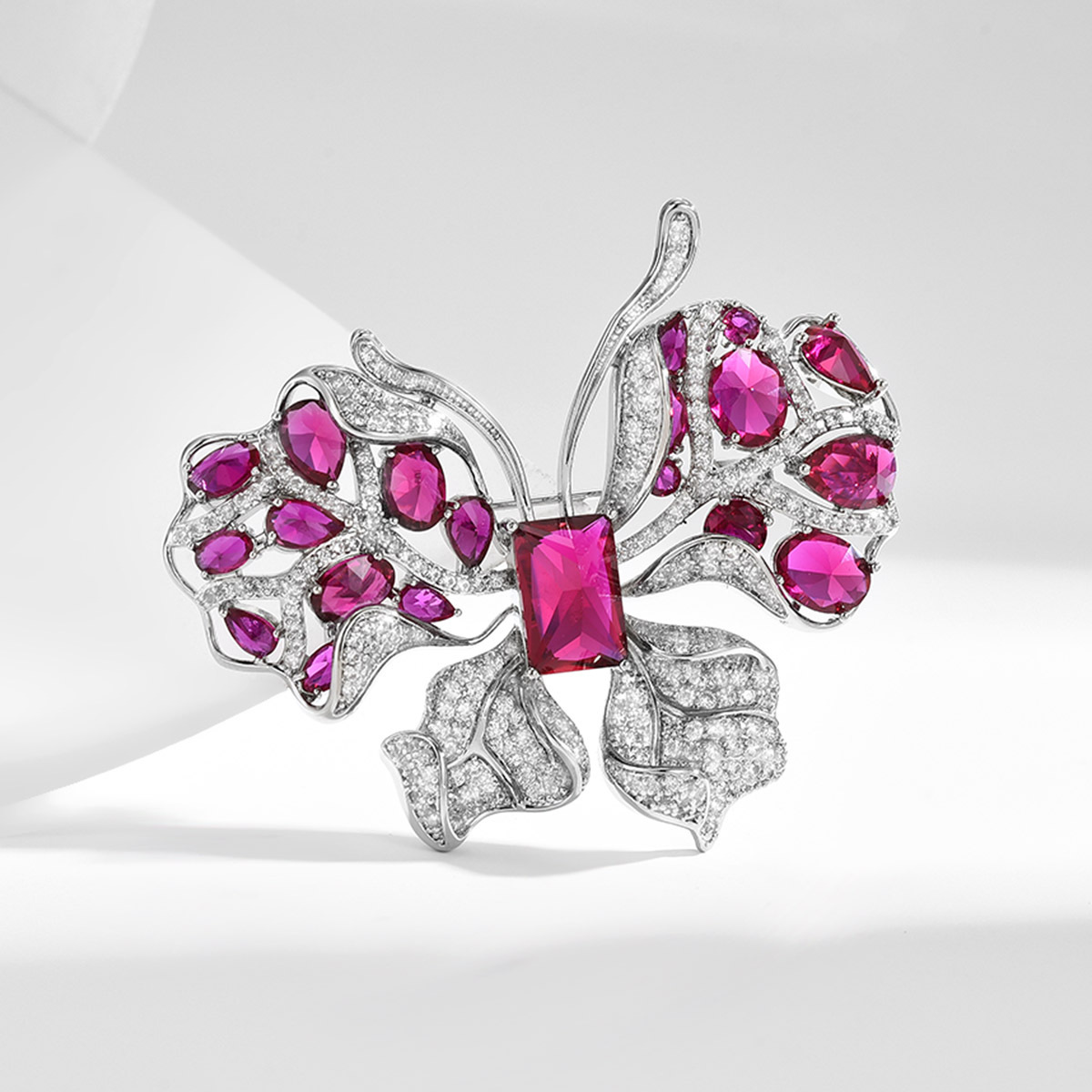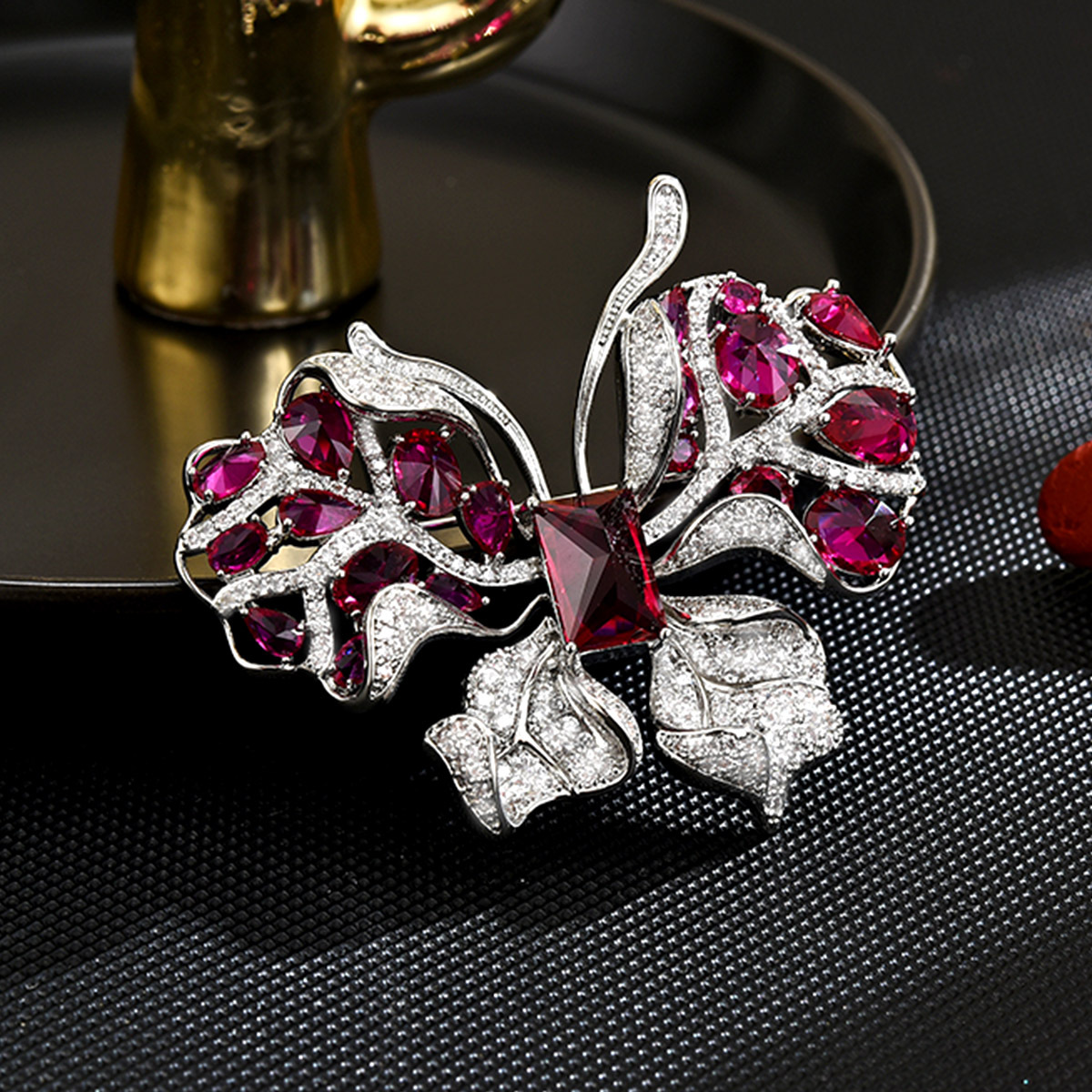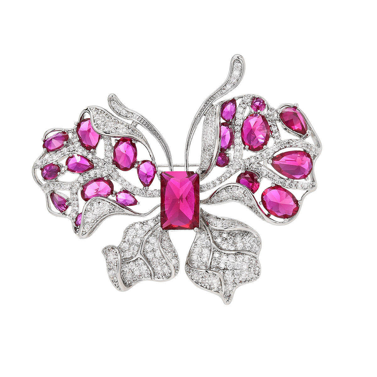 Cubic Zirconia Spilla, ottone, placcato, Micro spianare cubic zirconia & per la donna, argento, 49x58mm, Venduto da PC