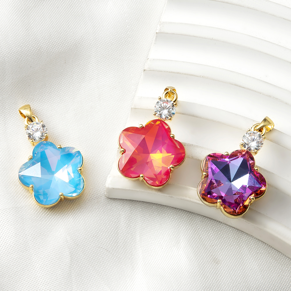 Cilindrata Zircone micro pavimenta il pendente di ottone, Fiore, Placcato oro 18K, stili diversi per la scelta & Micro spianare cubic zirconia & per la donna, Venduto da PC