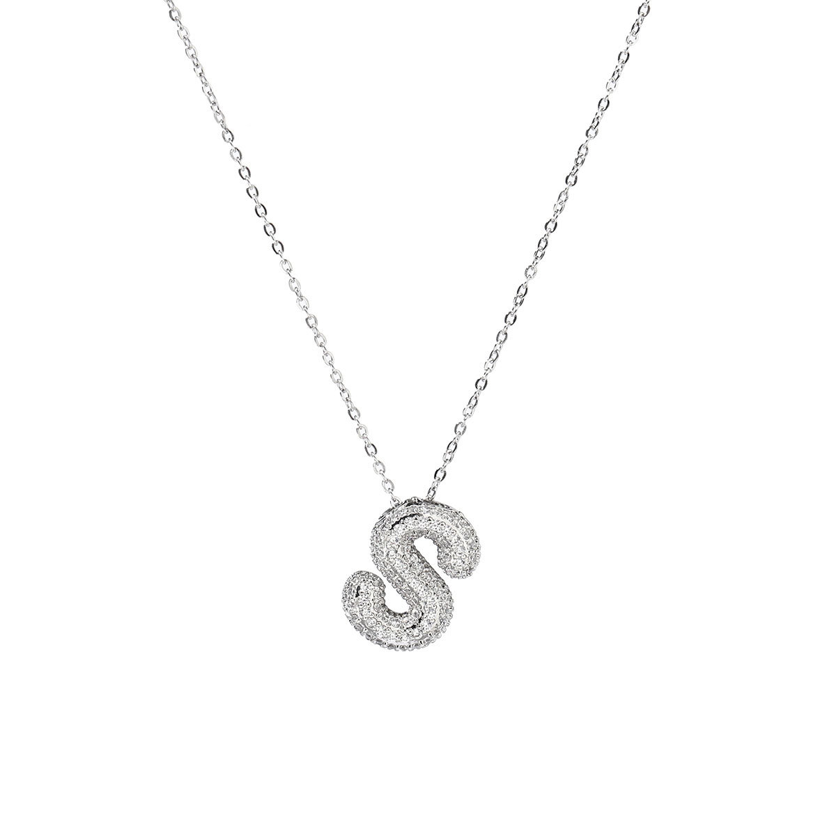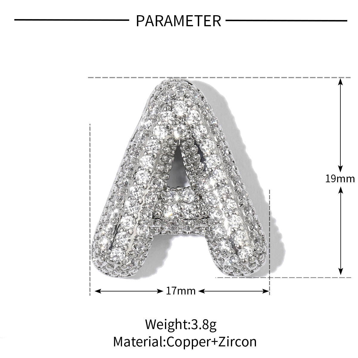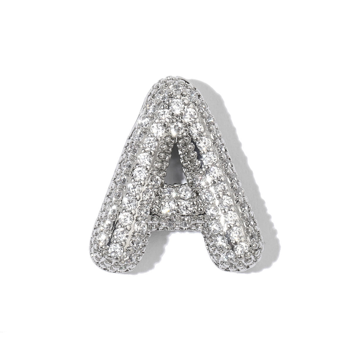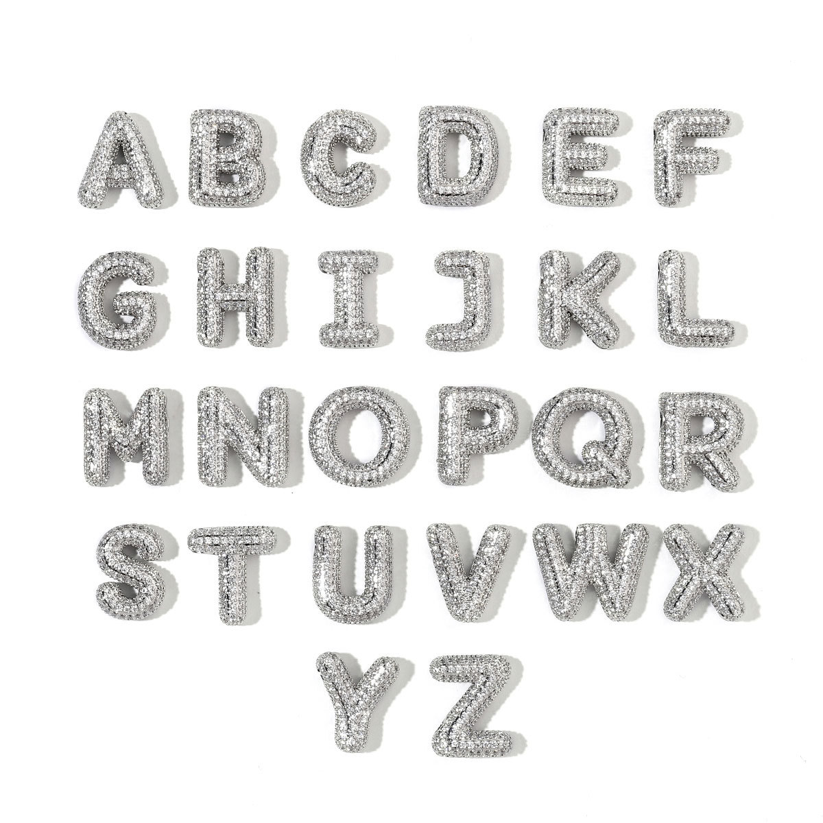 Dell'acciaio inossidabile Ciondoli Letter, ottone, Lettera alfabeto, placcato, DIY & Micro spianare cubic zirconia, argento, 3PC/borsa, Venduto da borsa