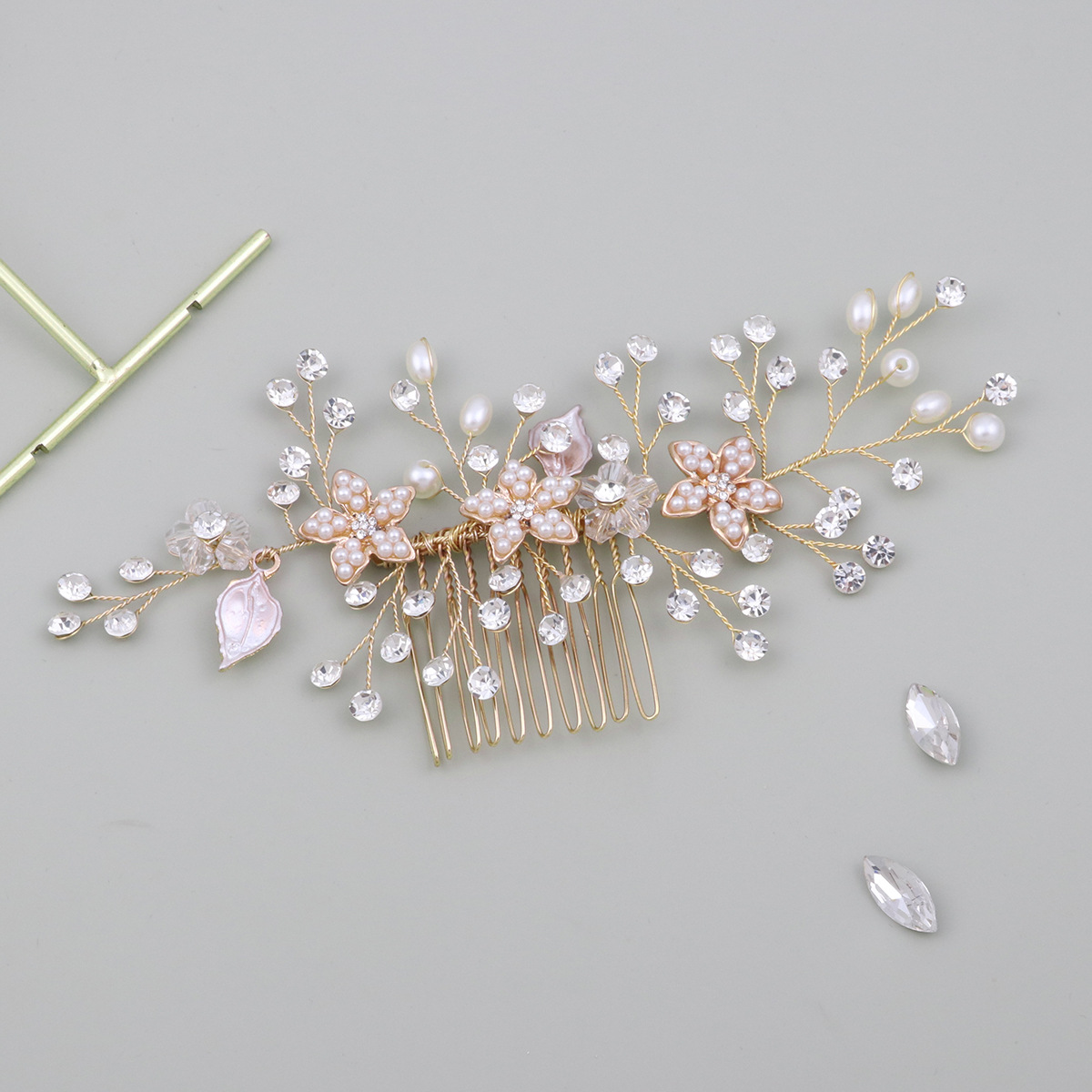 Bridal capelli decorativo Comb, lega in zinco, with filo di ottone & cristallo & perla in plastica, fatto a mano, gioielli di moda & per la donna & con strass, nessuno, Venduto da PC