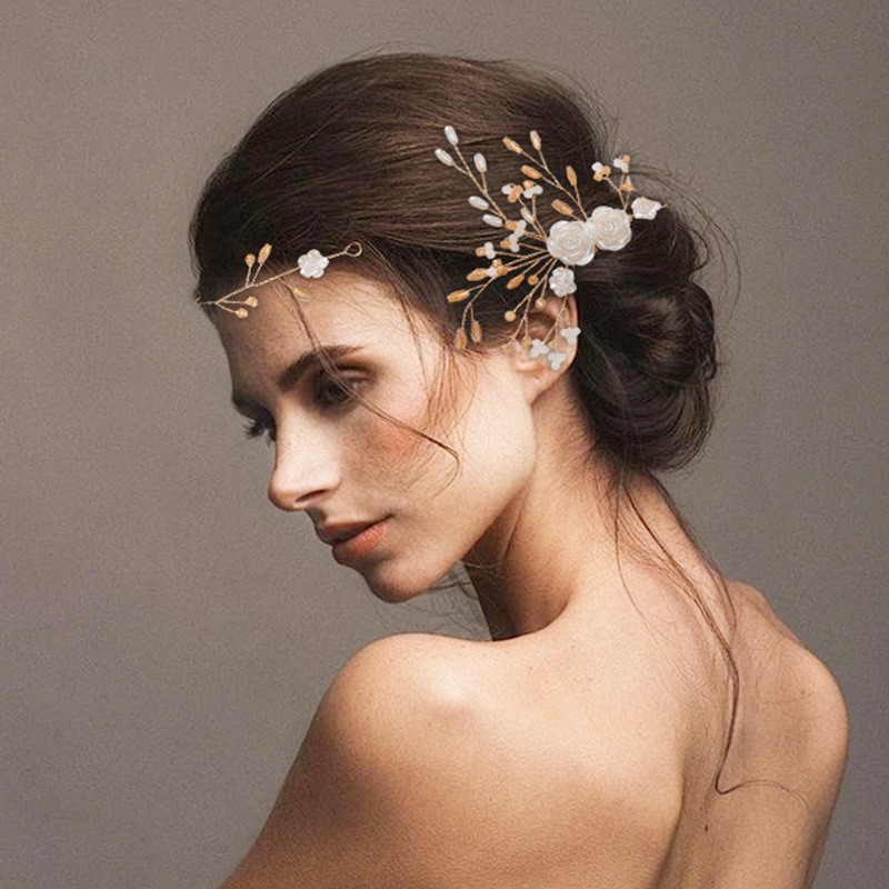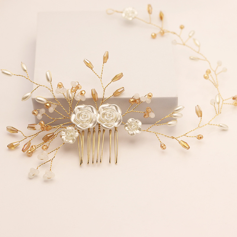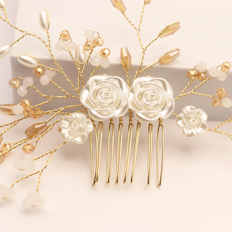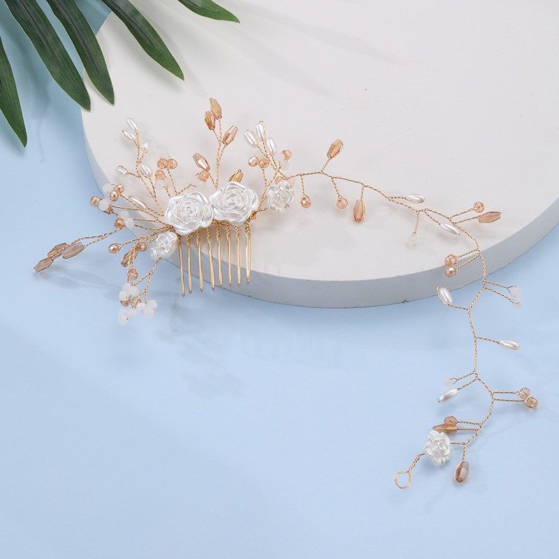 Bridal capelli decorativo Comb, lega in zinco, with filo di ottone & argilla polimero & cristallo & perla in plastica, fatto a mano, gioielli di moda & per la donna, Venduto da PC