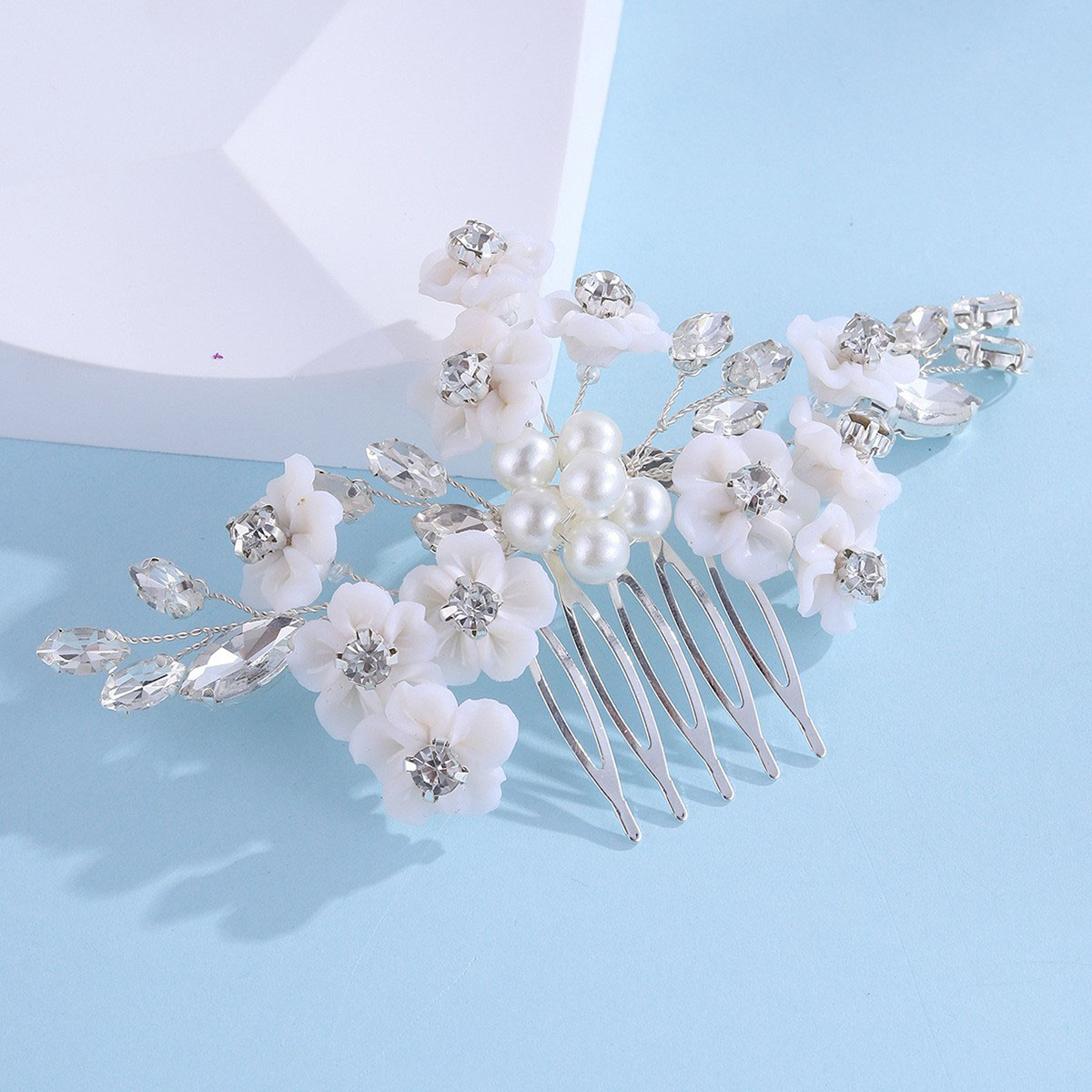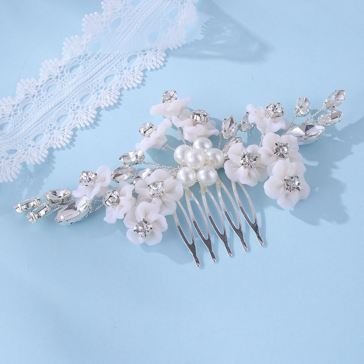 Bridal capelli decorativo Comb, lega in zinco, with filo di ottone & argilla polimero & perla in plastica, fatto a mano, gioielli di moda & per la donna & con strass, Venduto da PC