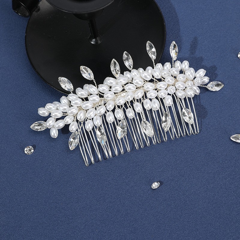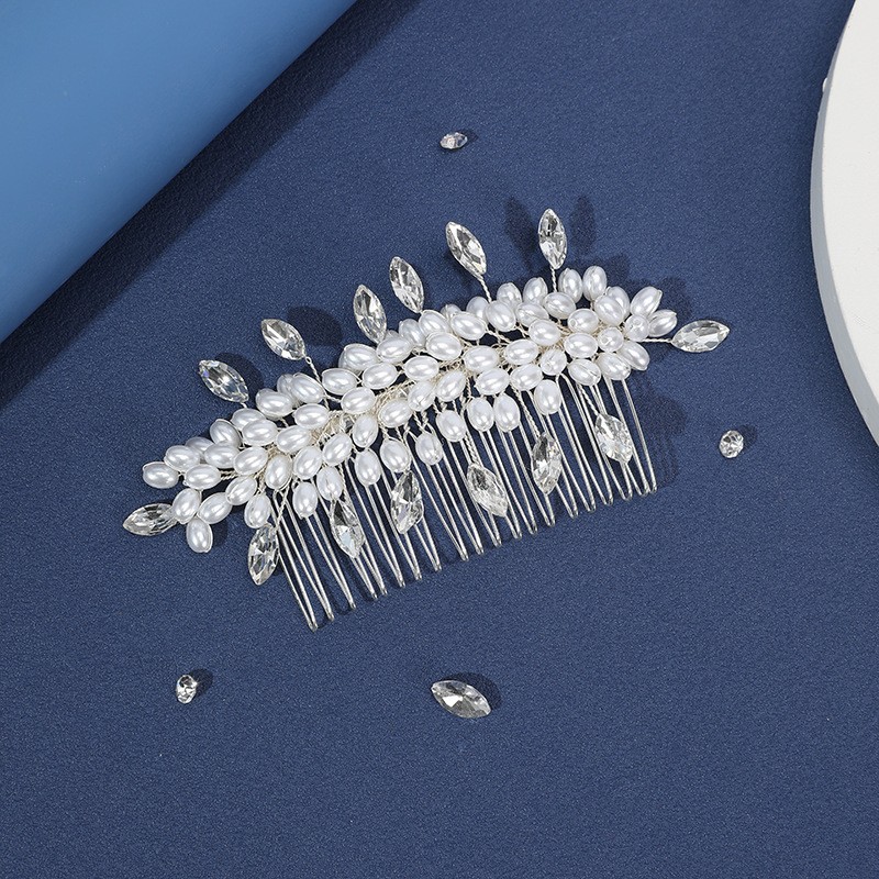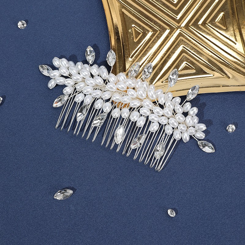 Bridal capelli decorativo Comb, lega in zinco, with filo di ottone & cristallo & perla in plastica, fatto a mano, gioielli di moda & per la donna, argento, Venduto da PC