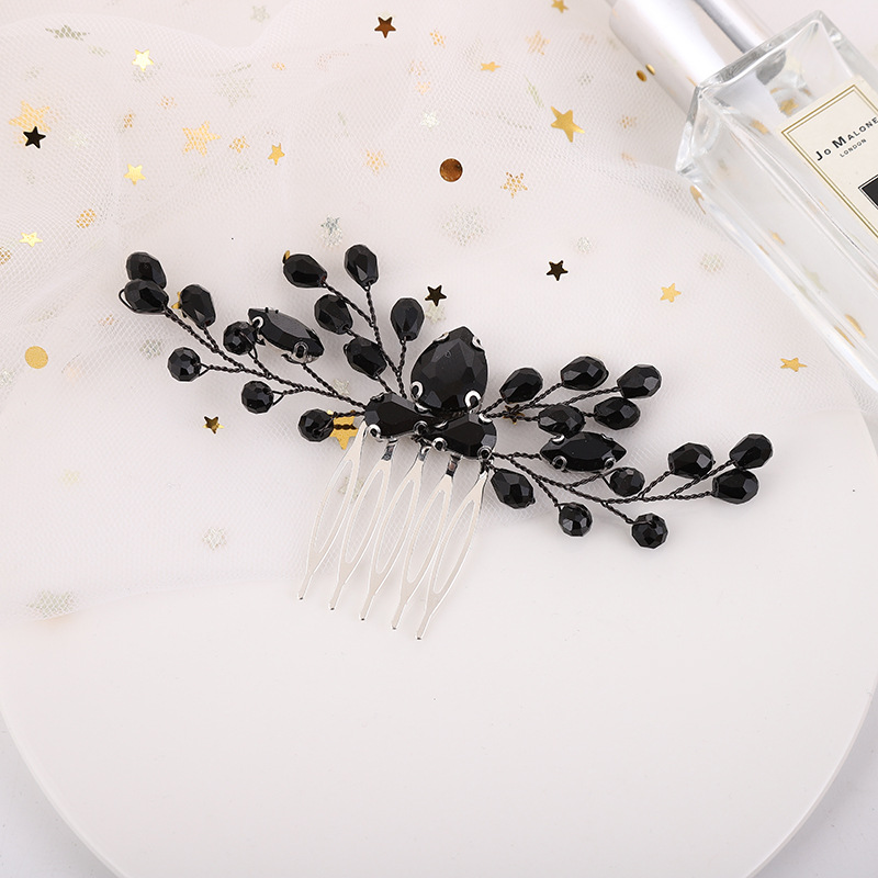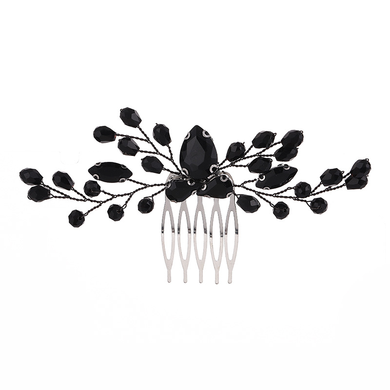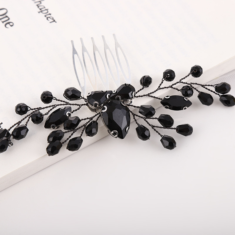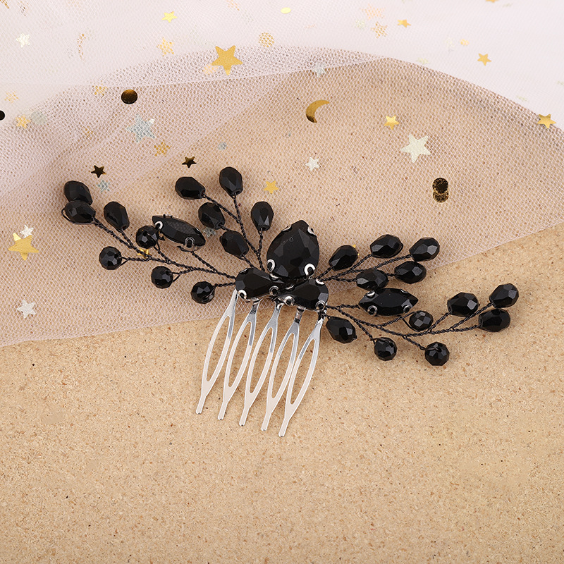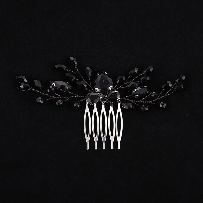 Bridal capelli decorativo Comb, lega in zinco, with filo di ottone & cristallo, fatto a mano, gioielli di moda & per la donna, nero, 130x75x10mm, Venduto da PC