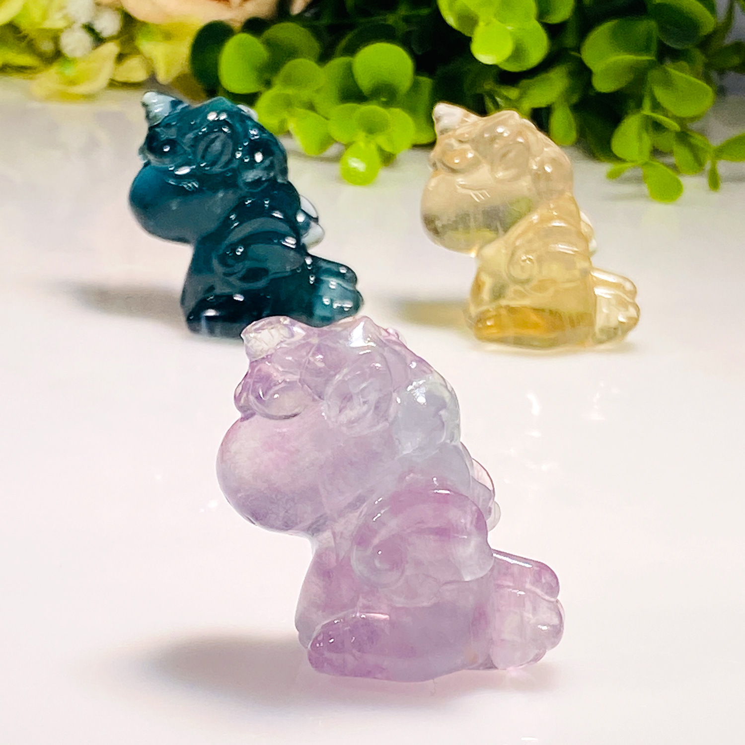 1:Random color unicorn2:Colored fluorite unicorn3:Green fluorite unicorn4:Blue fluorite unicorn