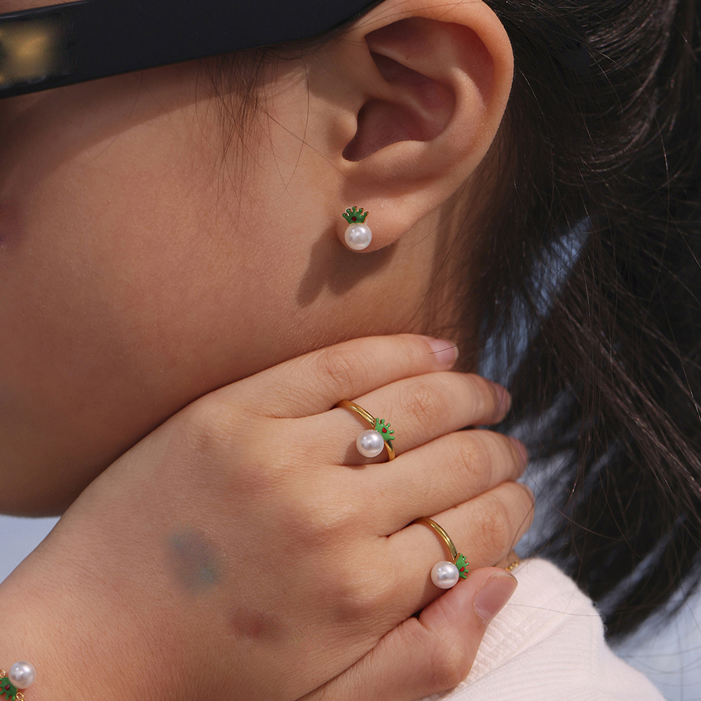 Set di gioielli in acciaio inossidabile smaltato, 304 acciaio inox, with Shell Pearl, placcato, Ragazza & stili diversi per la scelta & smalto, dorato, Venduto da PC