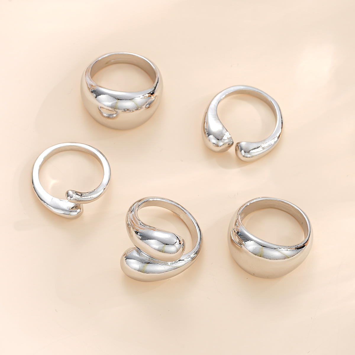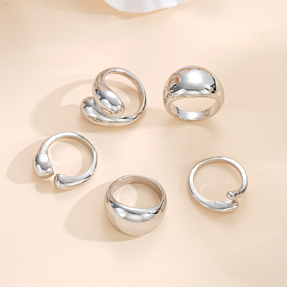 Set di anelli in lega di zinco, lega in zinco, placcato, 5 pezzi & gioielli di moda & per la donna, 100x70x20mm, Venduto da set