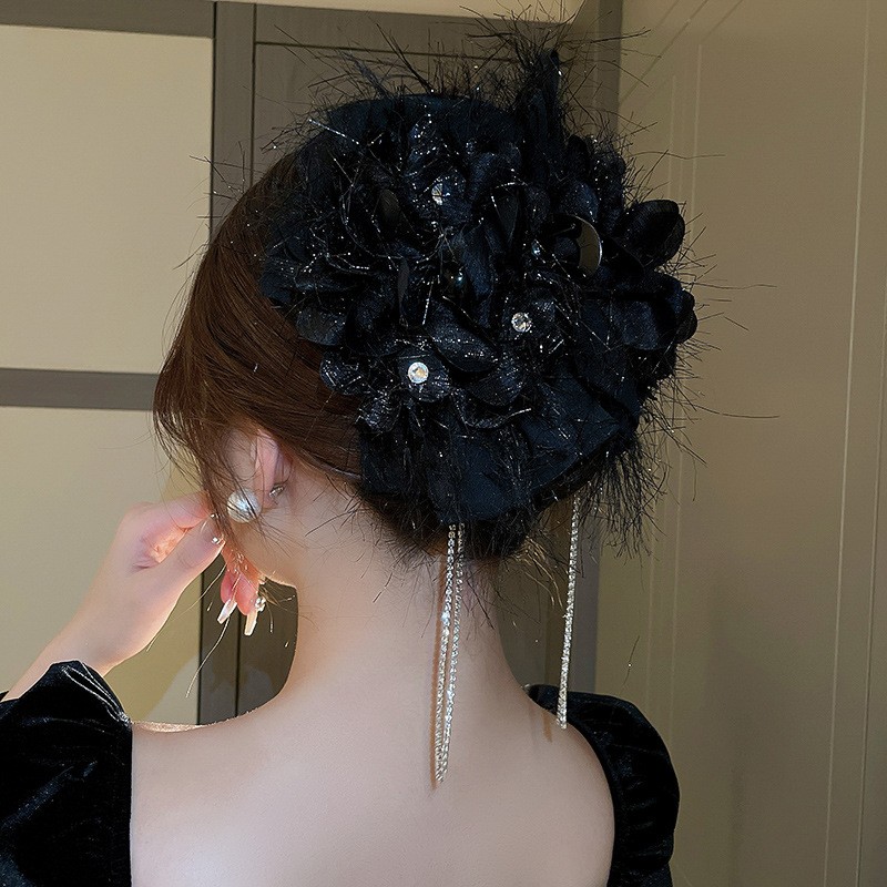 Etamine mollettone per capelli, with acrilico, placcato, per la donna & con strass, nero, Venduto da PC