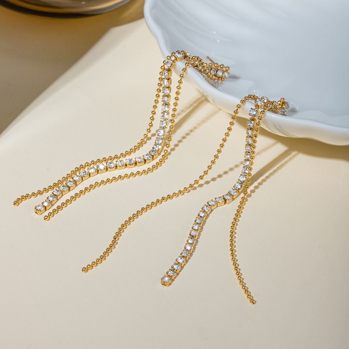 Fashion Fringe Orecchini, 304 acciaio inox, gioielli di moda & per la donna & con strass, dorato, Venduto da coppia