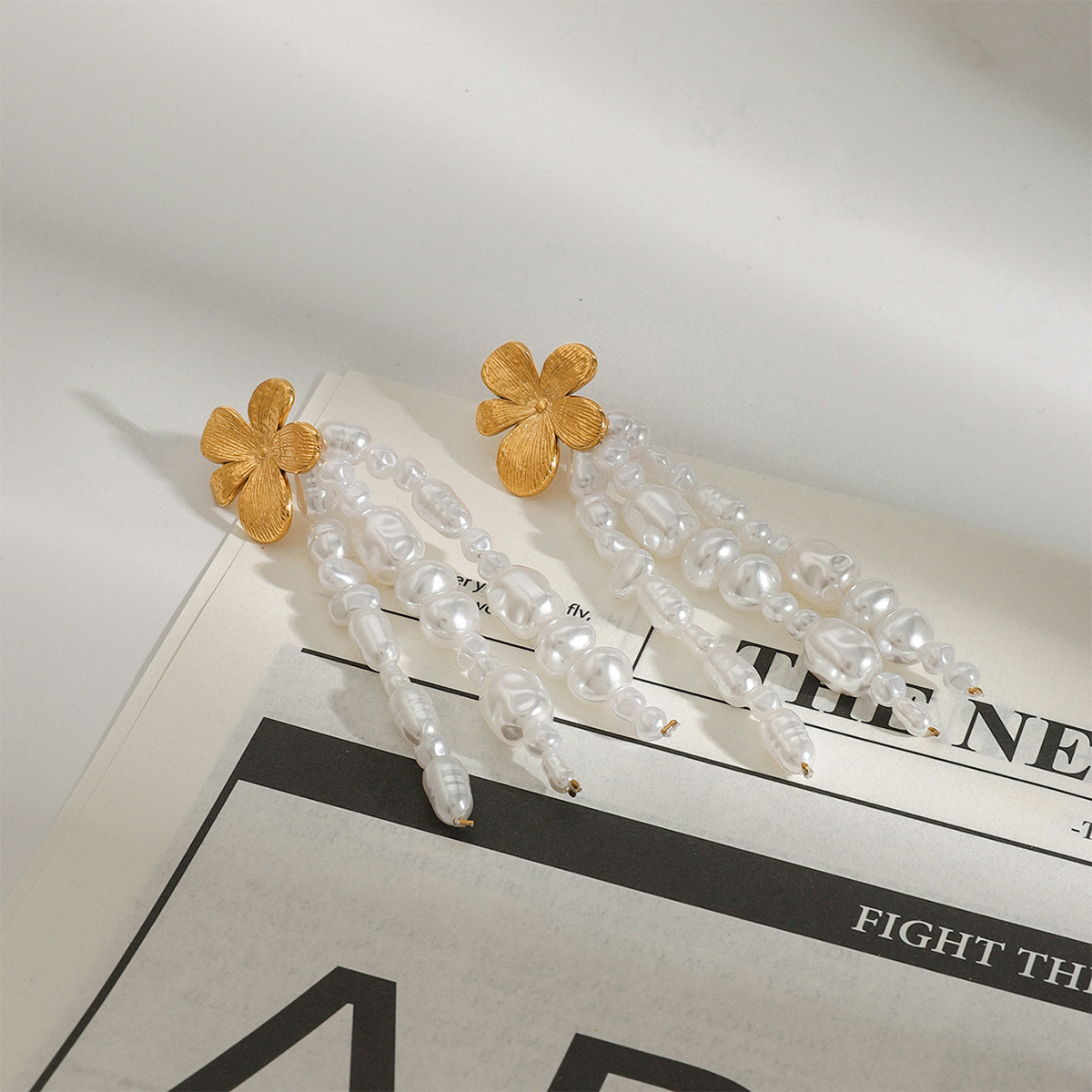 Fashion Fringe Orecchini, 304 acciaio inox, with perla in plastica, placcato, gioielli di moda & stili diversi per la scelta & per la donna, Venduto da coppia