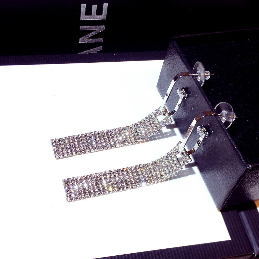 Fashion Fringe Orecchini, ottone, placcato, gioielli di moda & per la donna & con strass, nessuno, 80x10mm, Venduto da coppia