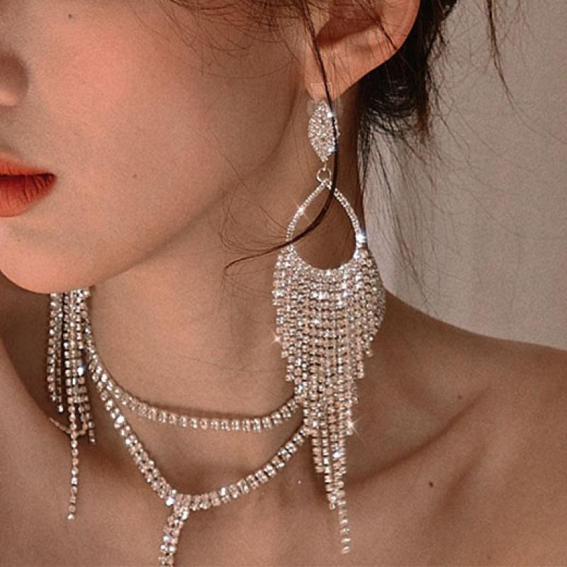 Fashion Fringe Orecchini, ottone, stili diversi per la scelta & per la donna & con strass, argento, Venduto da coppia