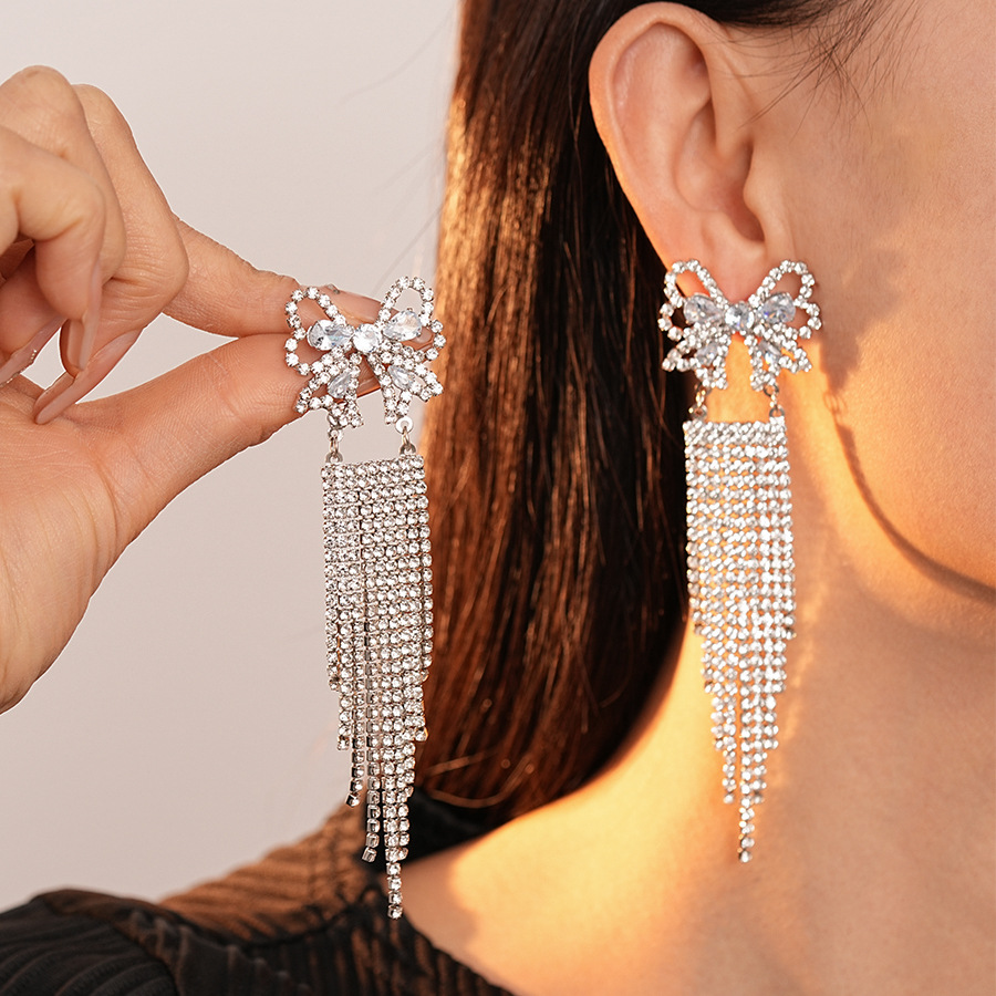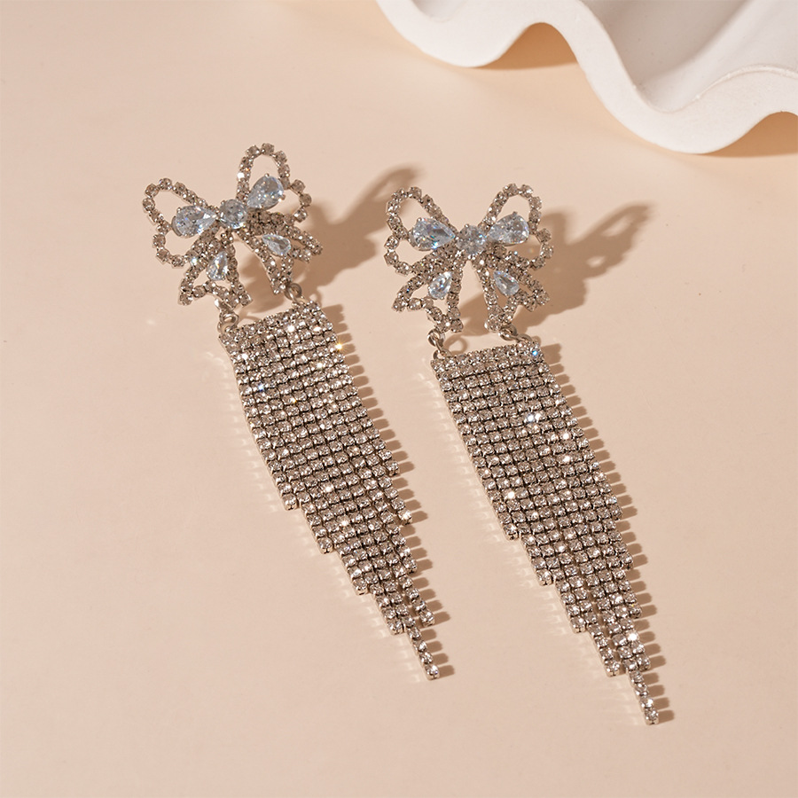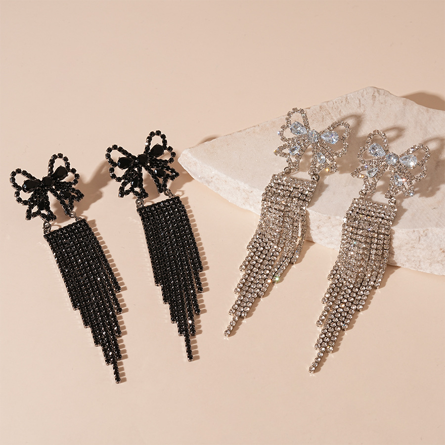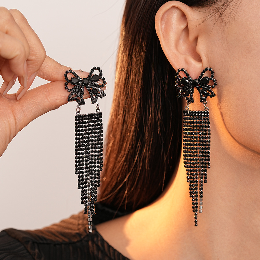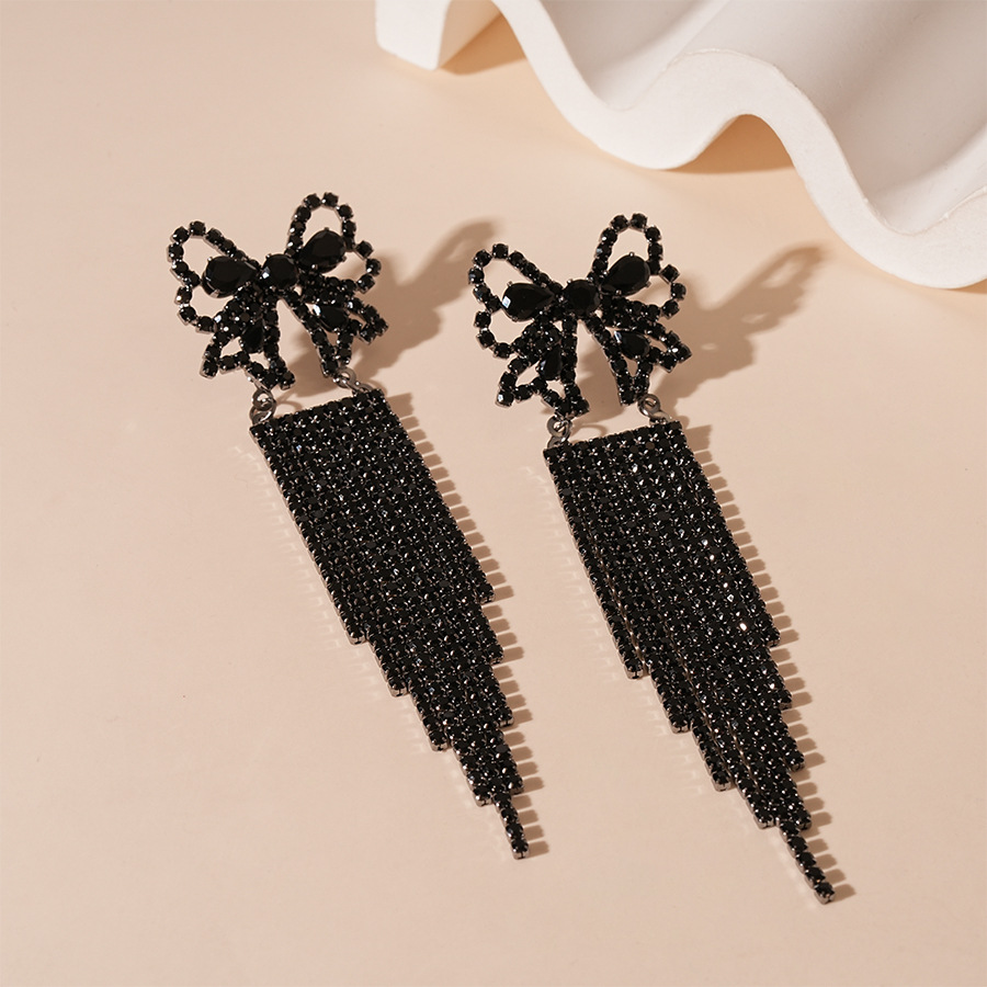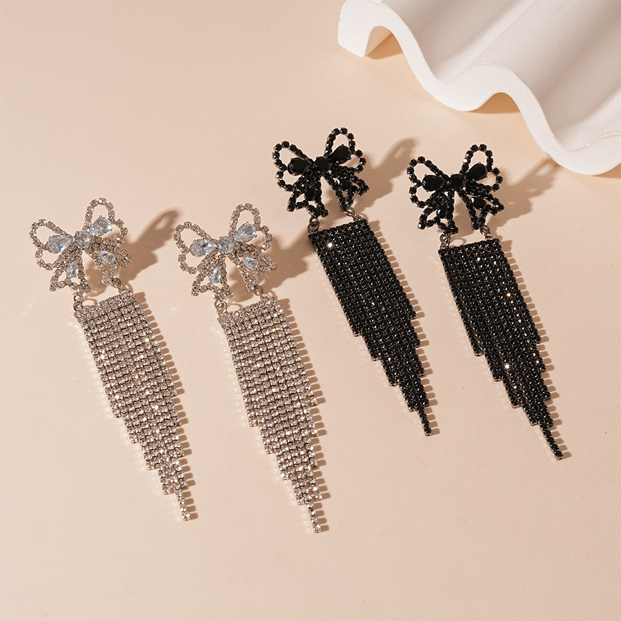 1:Silver needle-silver bow tassel earrings2:Silver needle-black bow tassel earrings