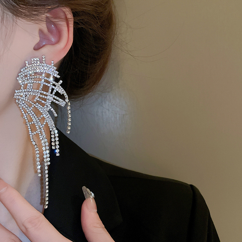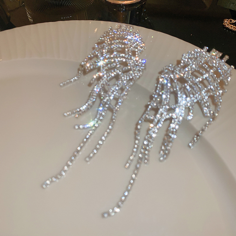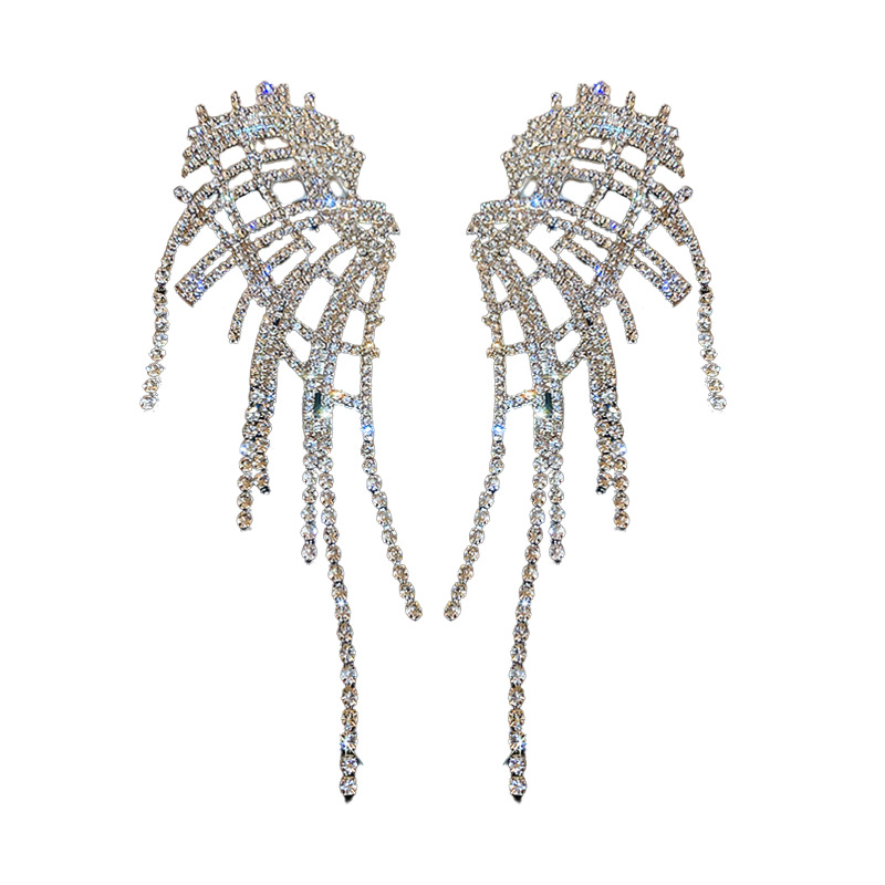 Fashion Fringe Orecchini, lega in zinco, per la donna & con strass & cavo, argento, 118x42mm, Venduto da coppia