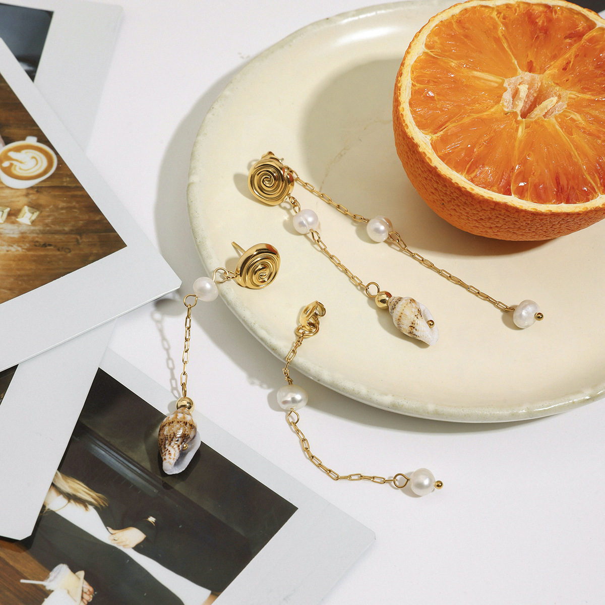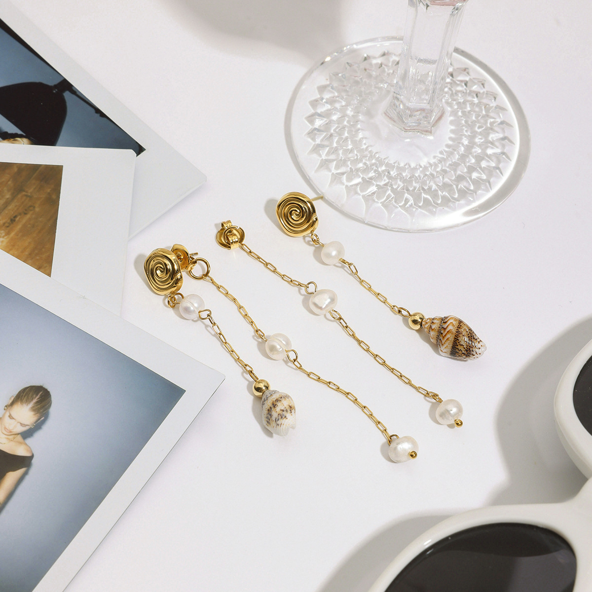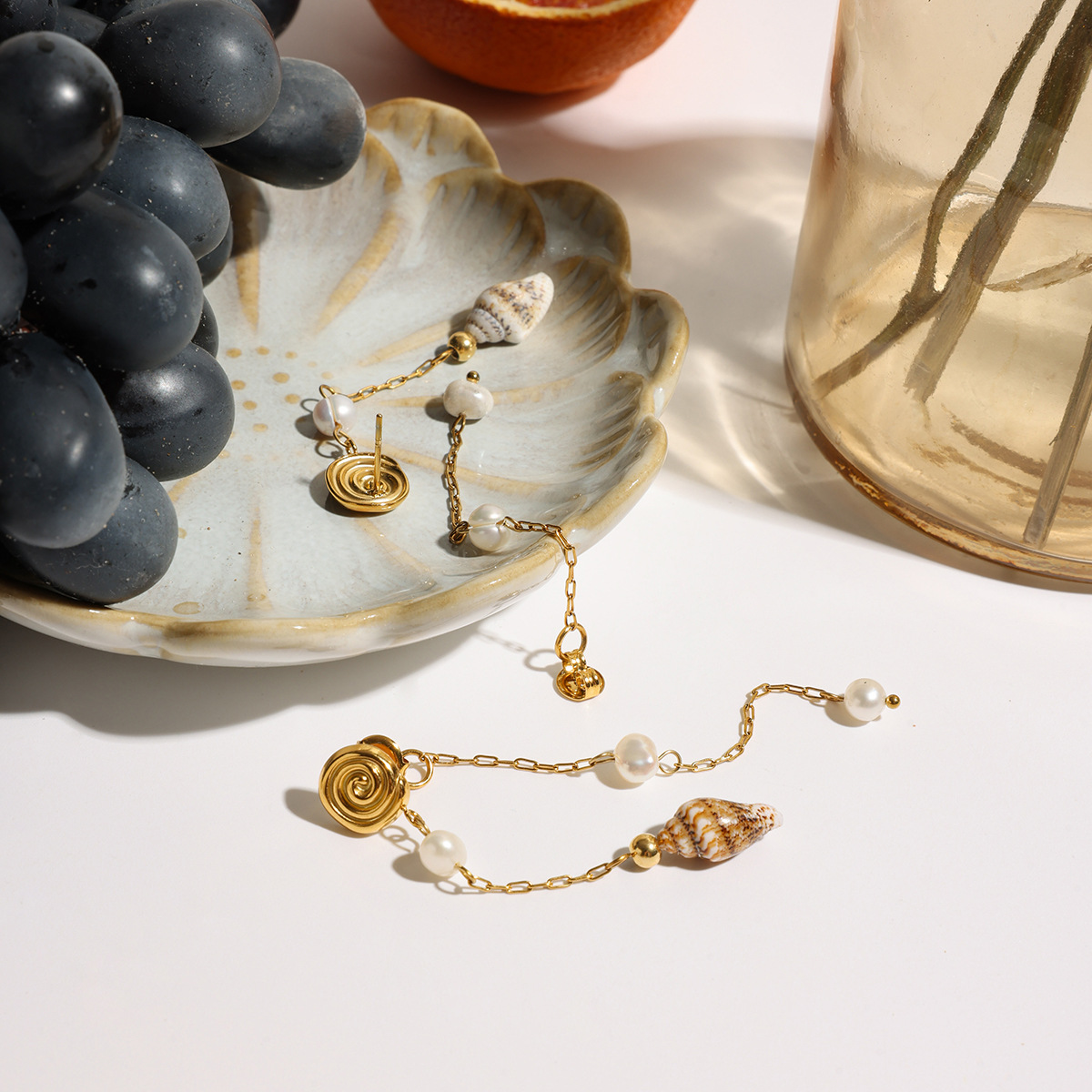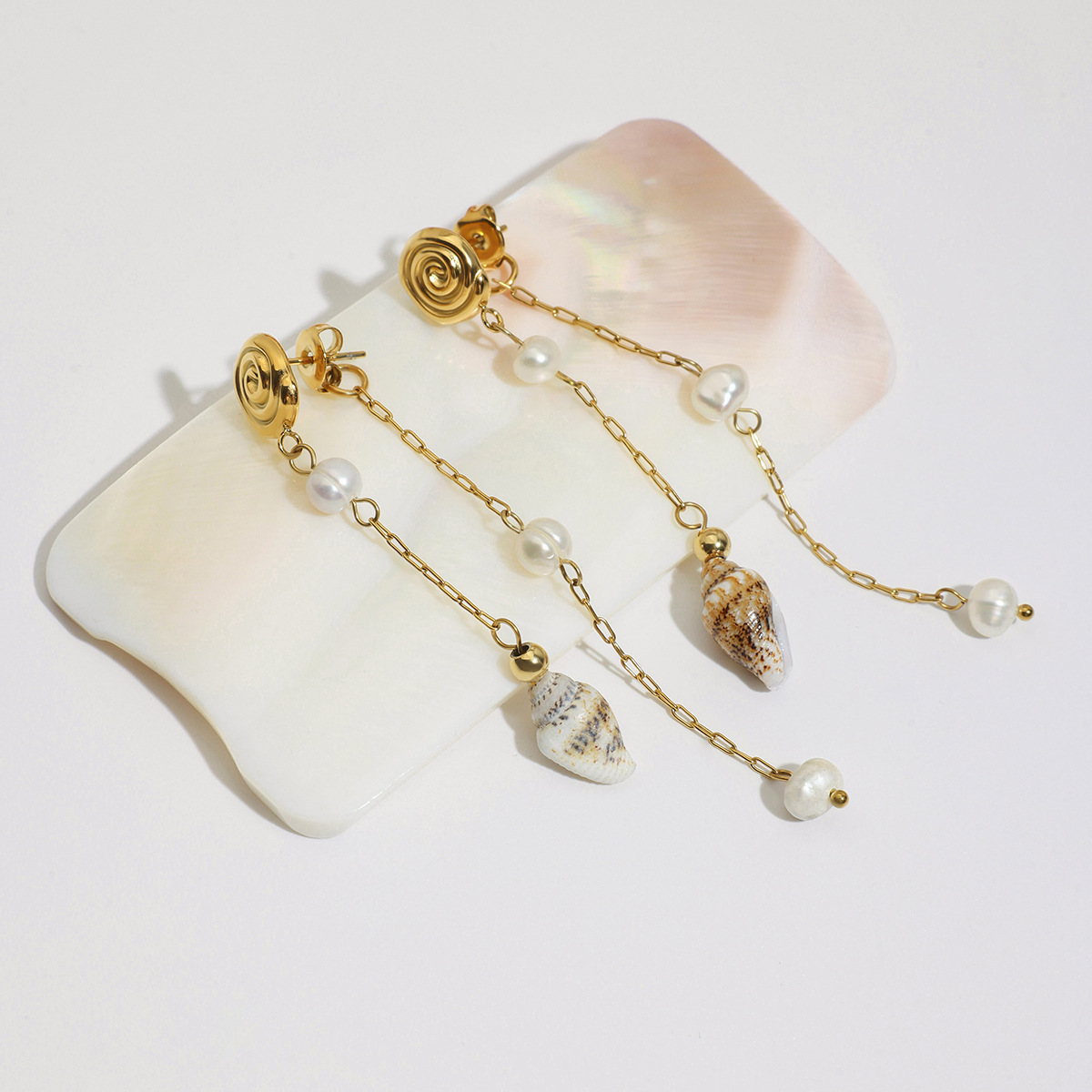 Fashion Fringe Orecchini, 304 acciaio inox, with conchiglia & perla in plastica, placcato color oro, gioielli di moda, nessuno, Venduto da coppia