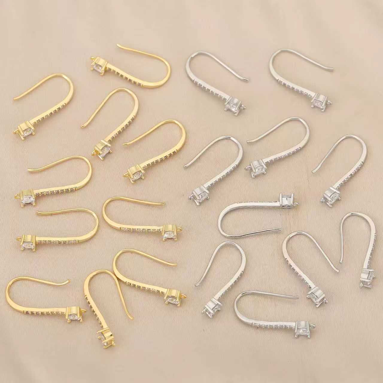 Filamenti a gancio per orecchini in ottone , placcato, DIY & con strass, nessuno, assenza di nichel,piombo&cadmio, 10PC/borsa, Venduto da borsa