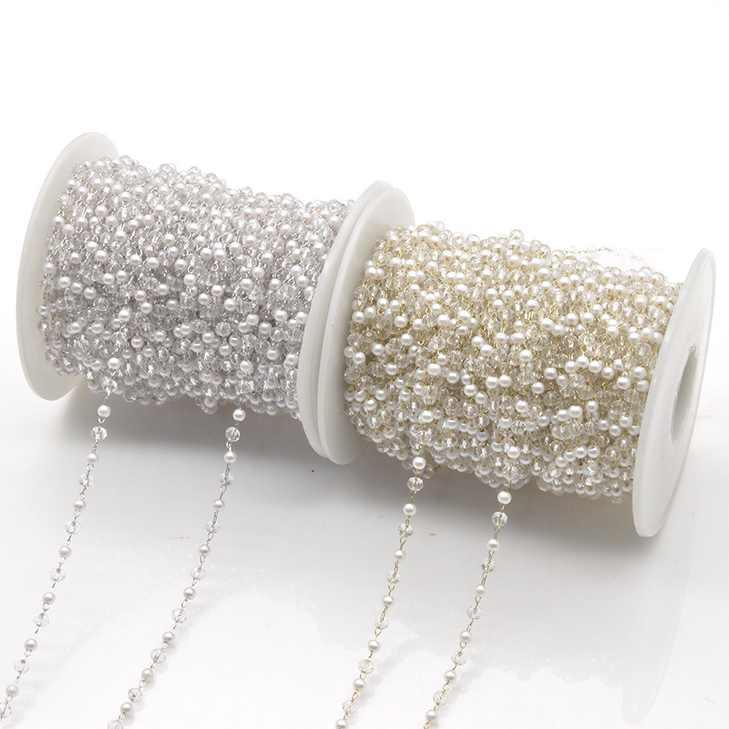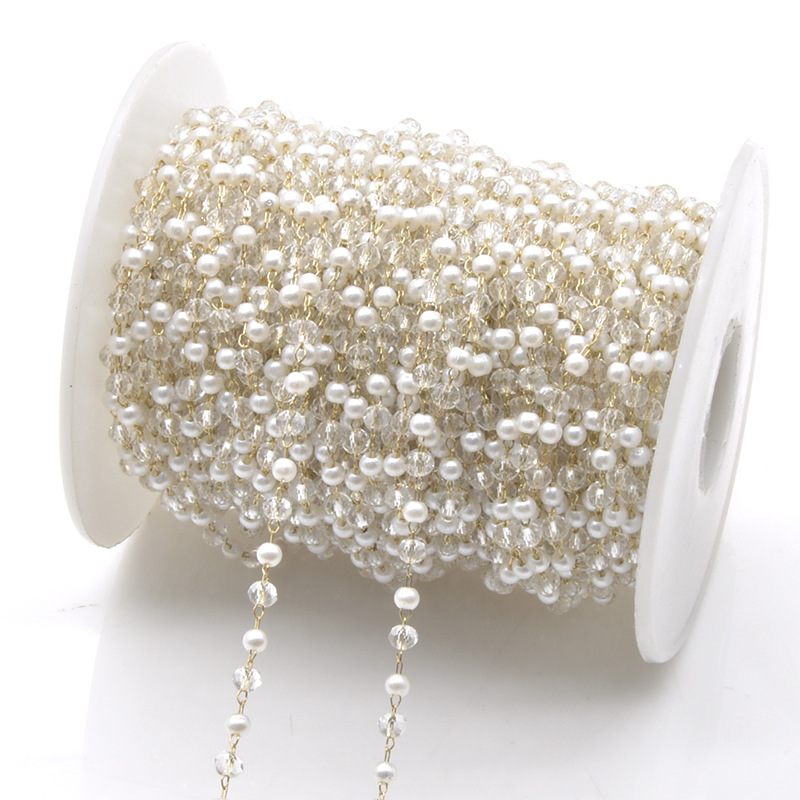 Gemma catena di perline, ottone, with perla in plastica, placcato, DIY, nessuno, Venduto da m