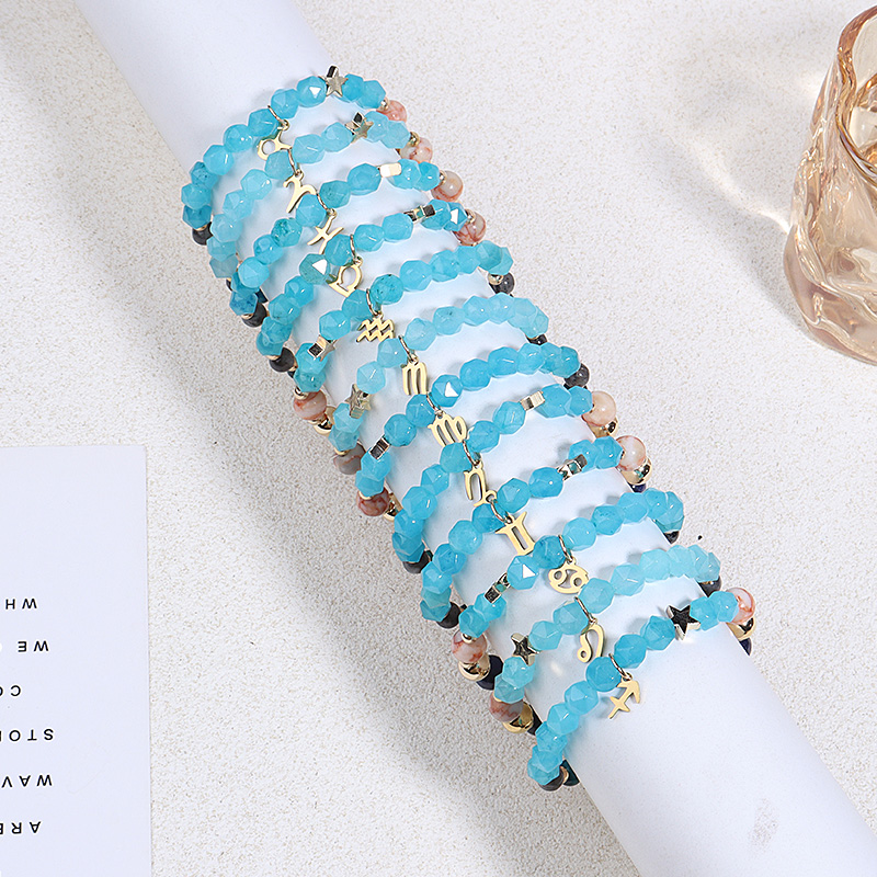 Gemstone Bracciali, 304 acciaio inox, with pietra preziosa, 12 Segni zodiacali, placcato, gioielli di moda, nessuno, 6-8mm, Venduto per 19 cm filo