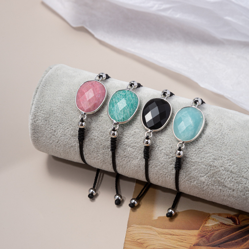 1:Black agate + stainless steel beads2:Monochrome amazon + stainless steel beads3:Rhodochrosite + stainless steel beads4:Amazonite + stainless steel beads