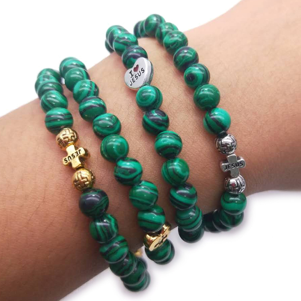 Gemstone Bracciali, lega in zinco, with malachite, Croce, placcato, gioielli di moda, nessuno, 6mm, Lunghezza 17 cm, Venduto da PC