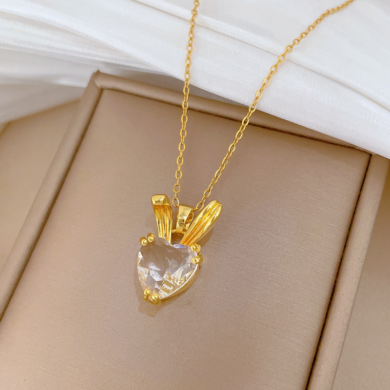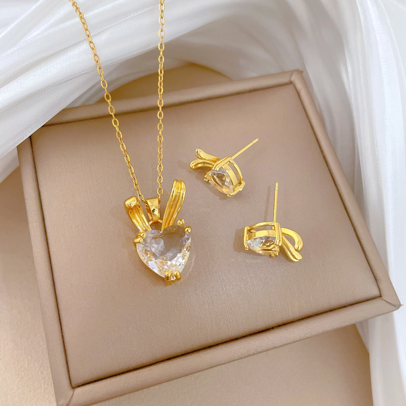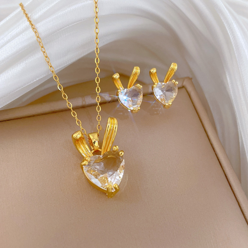 1:P529 necklace, titanium steel chain, copper micro-inlaid pendant2:P530 Stud Earrings [Copper Real Gold Electroplated]