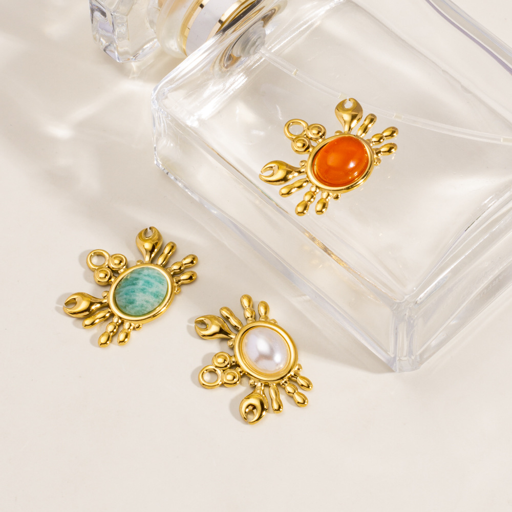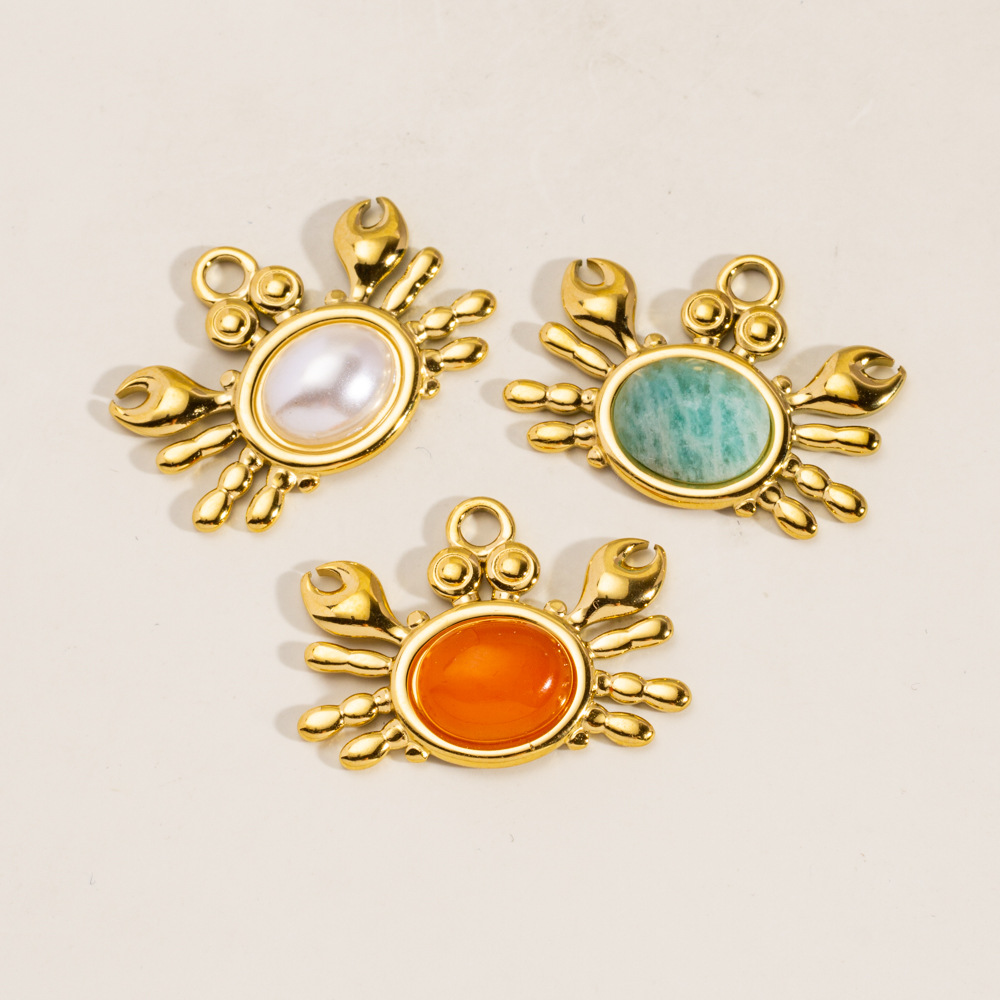 Gioielli ciondoli con gemme, 304 acciaio inox, with Pietra naturale & Shell Pearl, Granchio, placcato, DIY, nessuno, 10PC/borsa, Venduto da borsa