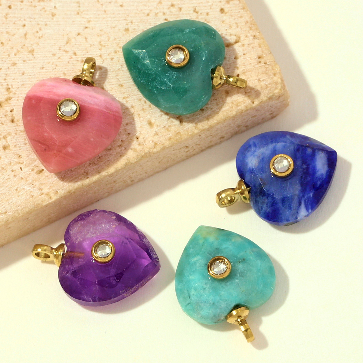 Gioielli ciondoli con gemme, 304 acciaio inox, with pietra preziosa, Cuore, placcato color oro, DIY & con strass, nessuno, 12x16mm, 3PC/borsa, Venduto da borsa