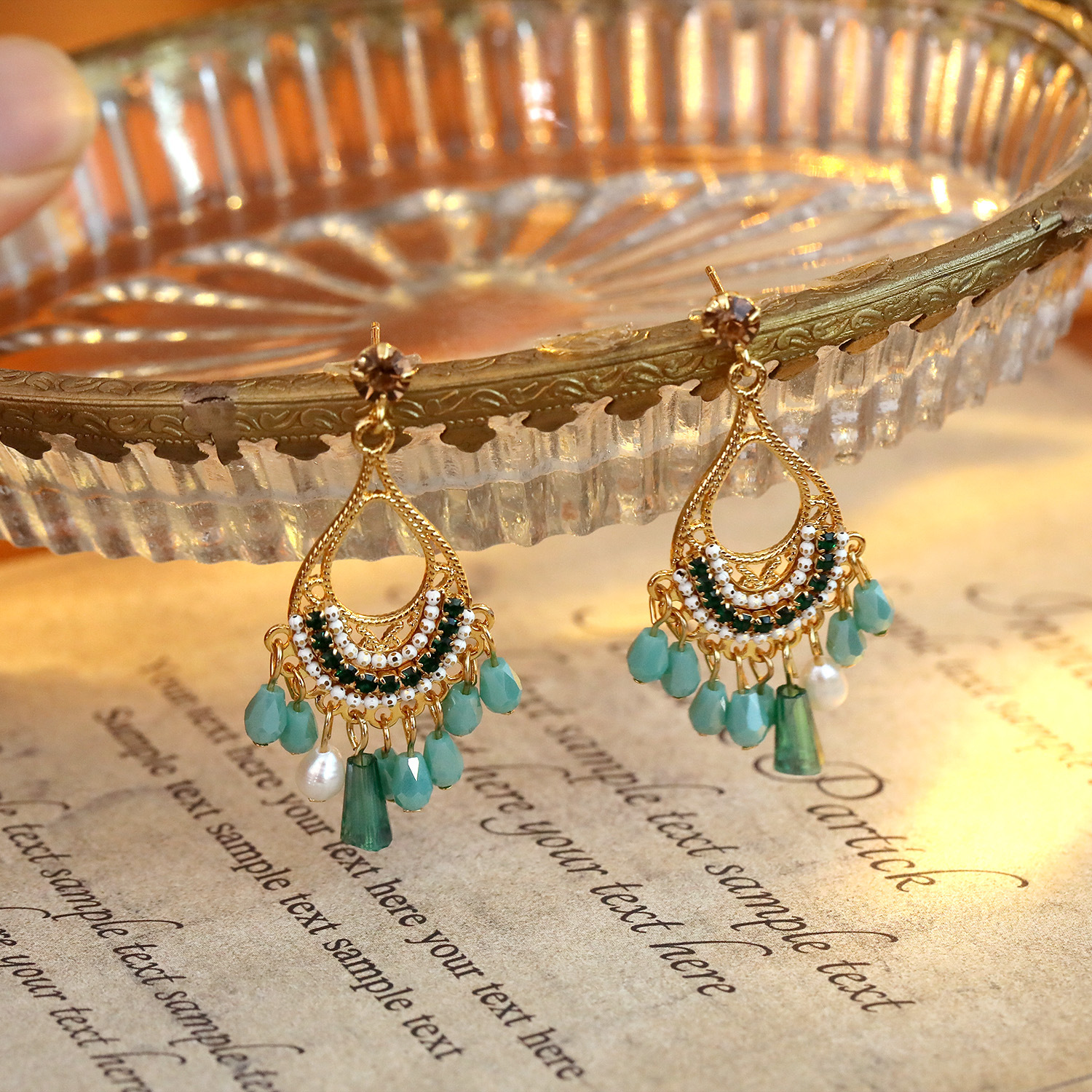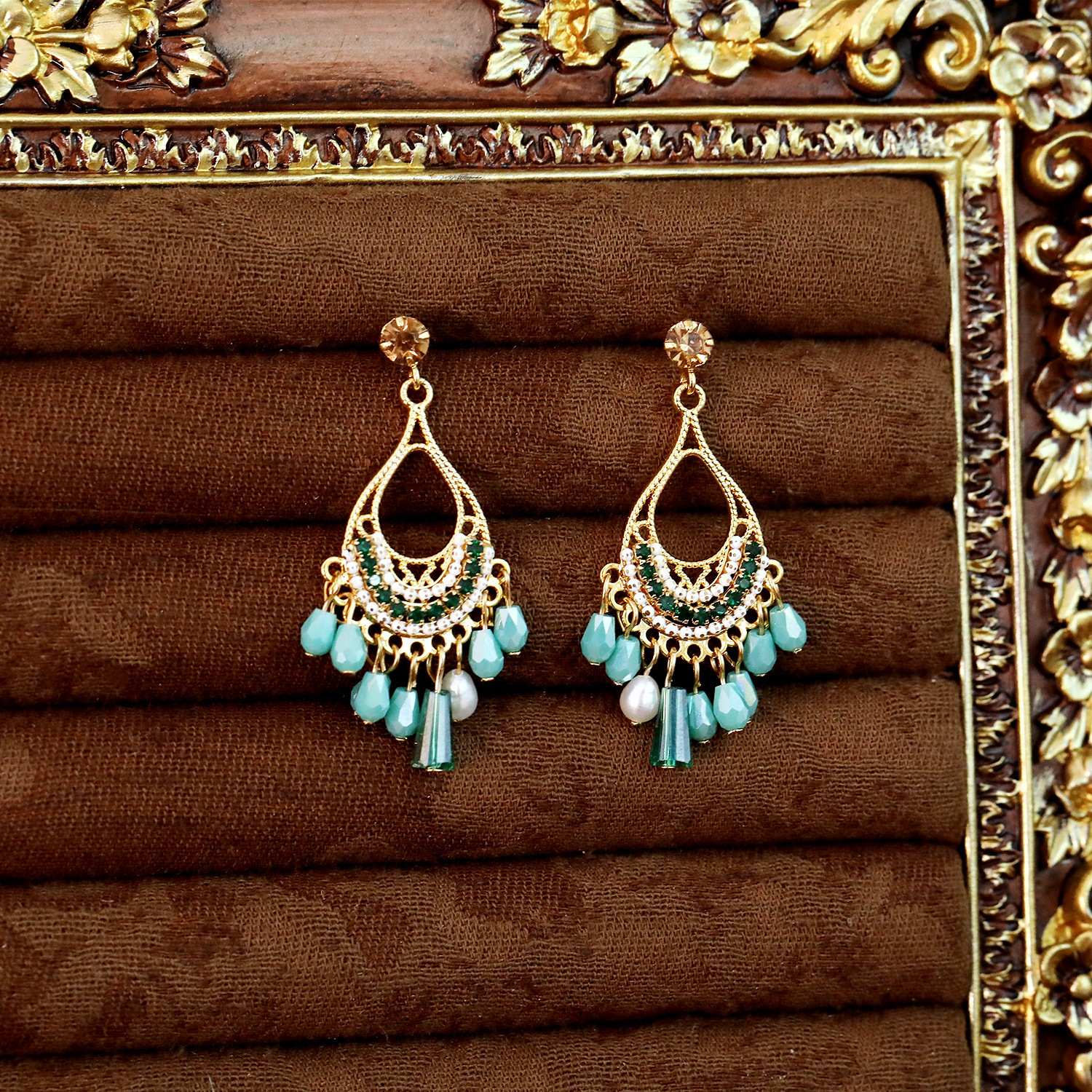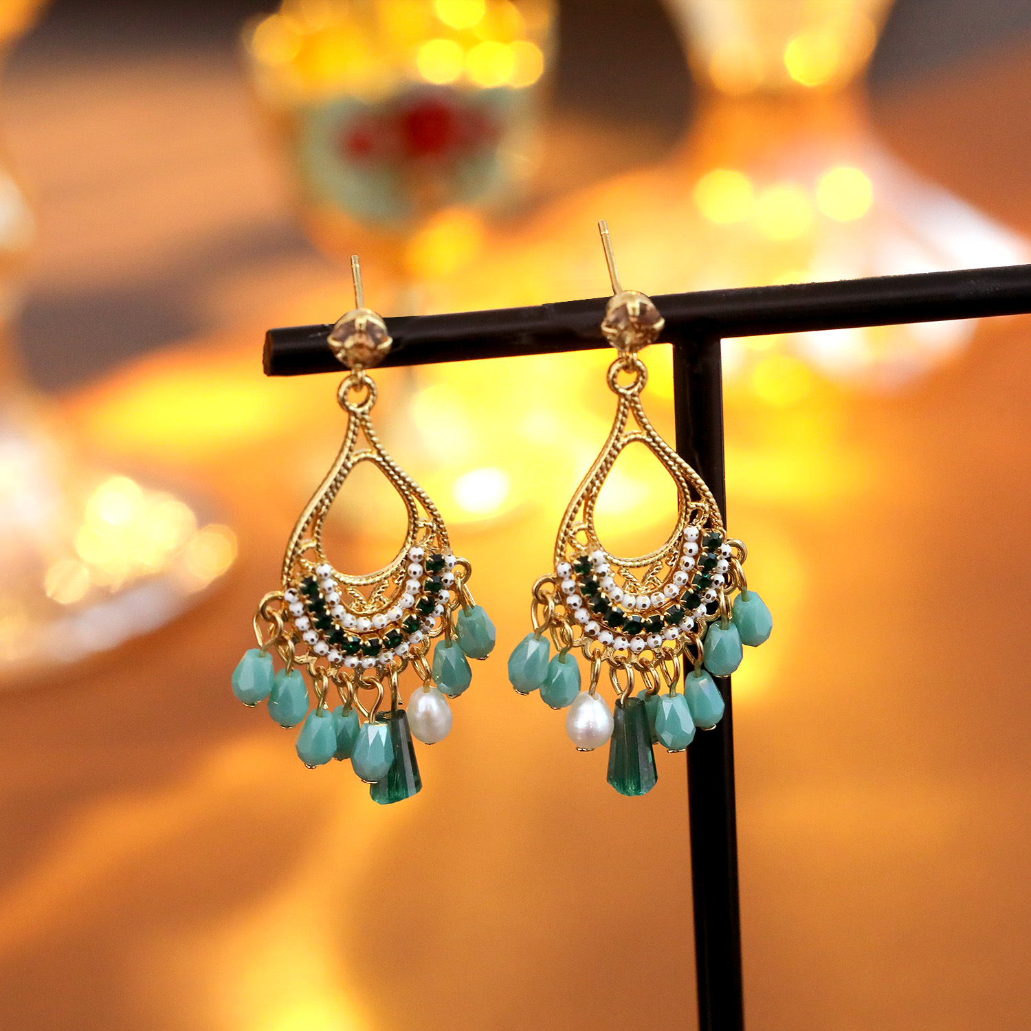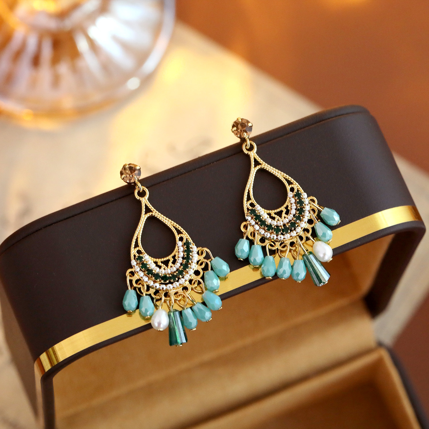 Gioielli orecchini, ottone, with pietrastone & cubico zircone & perla d'acquadolce coltivata naturalmente & cristallo, placcato, gioielli di moda & per la donna & cavo, dorato, 42x17mm, Venduto da coppia