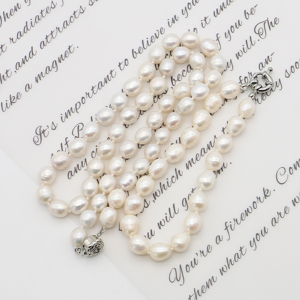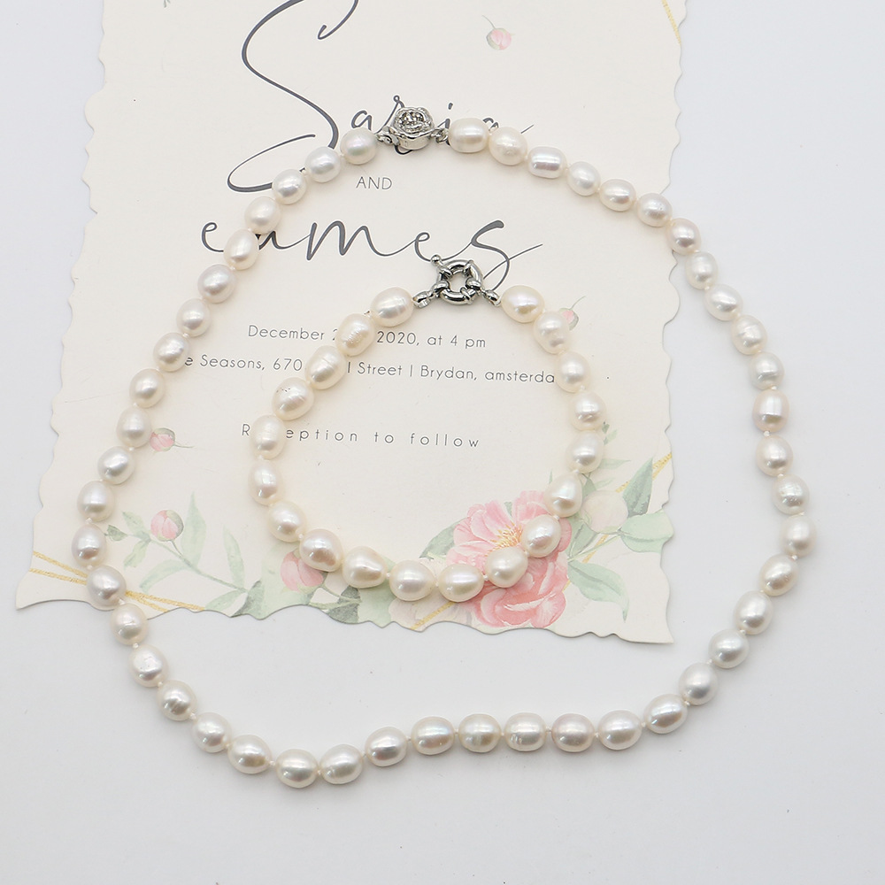 Gioielli perle naturali coltivate d'acquadolce, Bracciale & Collana, perla d'acquadolce coltivata naturalmente, with 304 acciaio inox, Irregolare, gioielli di moda, bianco, pearl size 6-7mm, Venduto da set