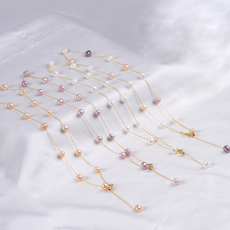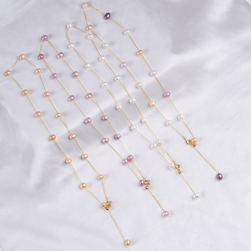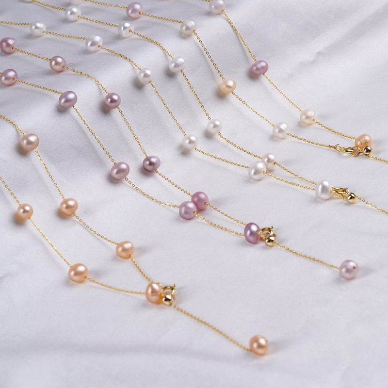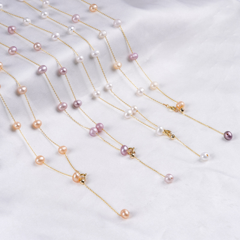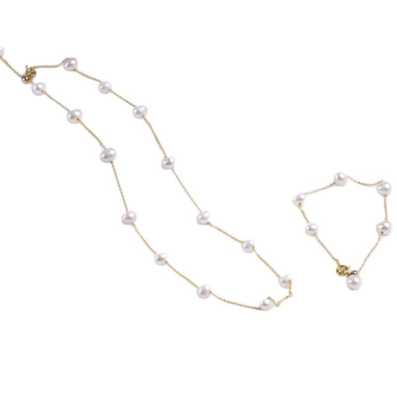 Gioielli perle naturali coltivate d'acquadolce, Bracciale & Collana, perla d'acquadolce coltivata naturalmente, with lega in zinco, Ovale, placcato color oro, gioielli di moda, nessuno, 5-6mm, Venduto da PC
