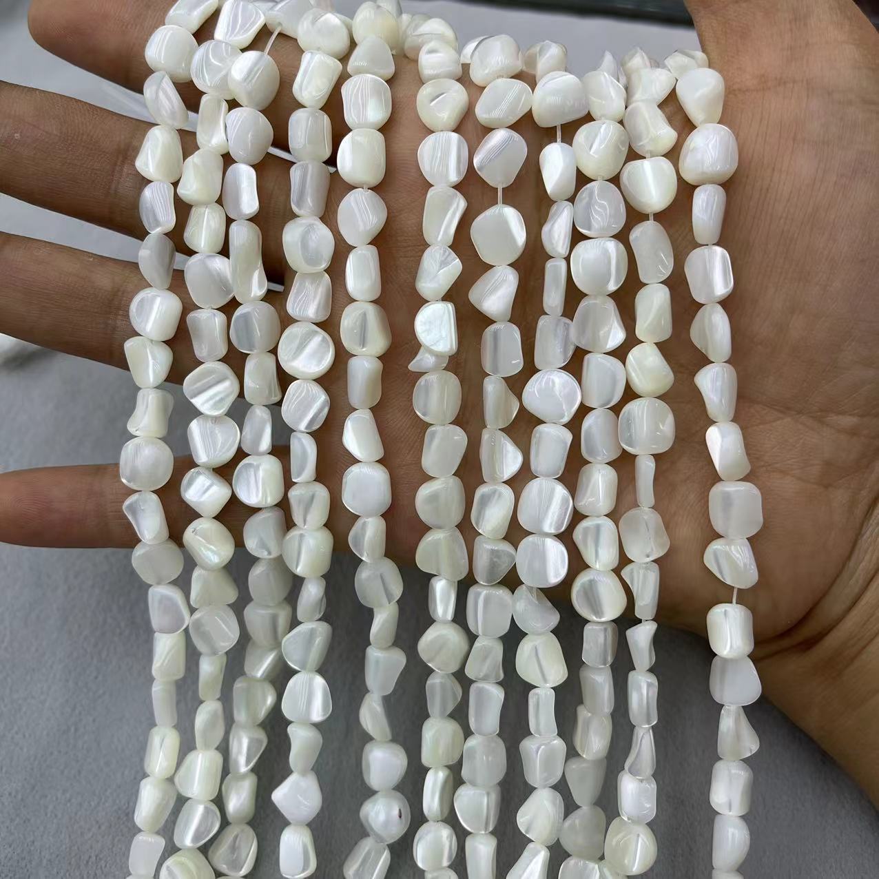 cima guscio perla, Irregolare, DIY, bianco, about:7-8mm, Appross. 45PC/filo, Venduto da filo