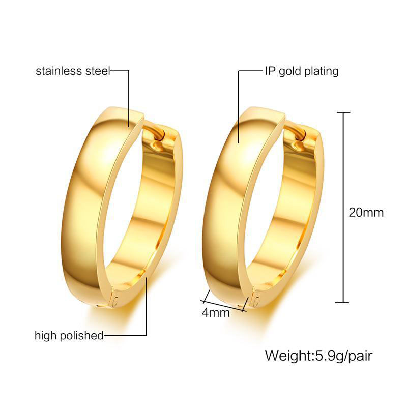 Huggie Orecchino ad anello, 304 acciaio inox, Rettangolo, placcato, per la donna, nessuno, 21x16x3.50mm, Venduto da coppia
